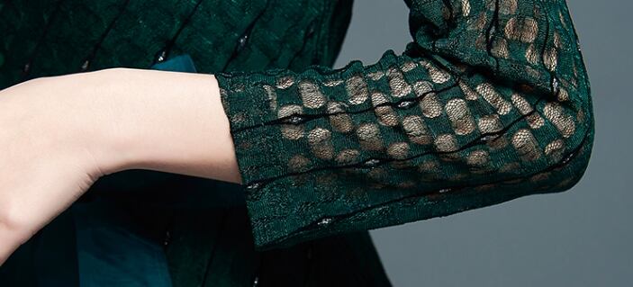 クラシックなデザイン、ウエスト部分の切り替えなど、エレガントさにほんのり甘さをプラスする、絶妙なバランスとデザイン。