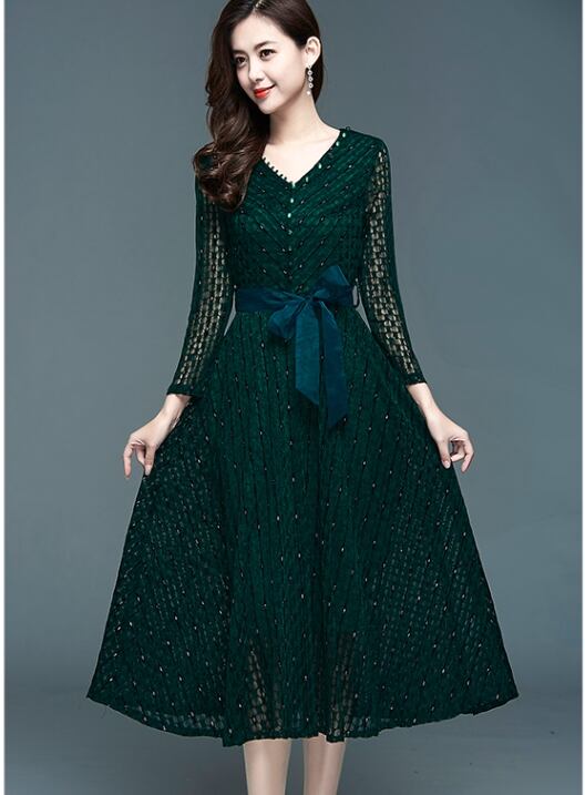 レースワンピース ワンピース フレアワンピース ワンピドレス 膝丈 ひざ丈 袖あり 長袖 Vネック フレア Aライン ウエストマーク ウエストリボン ハイウエスト かわいい 大人可愛い きれいめ シンプル カジュアル 大人 上品 おしゃれ お洒落 大人可愛い 大人女子 こなれ感 キュート ガーリー モダン 主役級 存在感 無地 春 夏 秋 10代 20代 30代 レディース 学生 通学 デート お出かけ 女子会 休日 パーティー イベント 着回し 普段使い 韓国系 オルチャン サイズ M L XL
