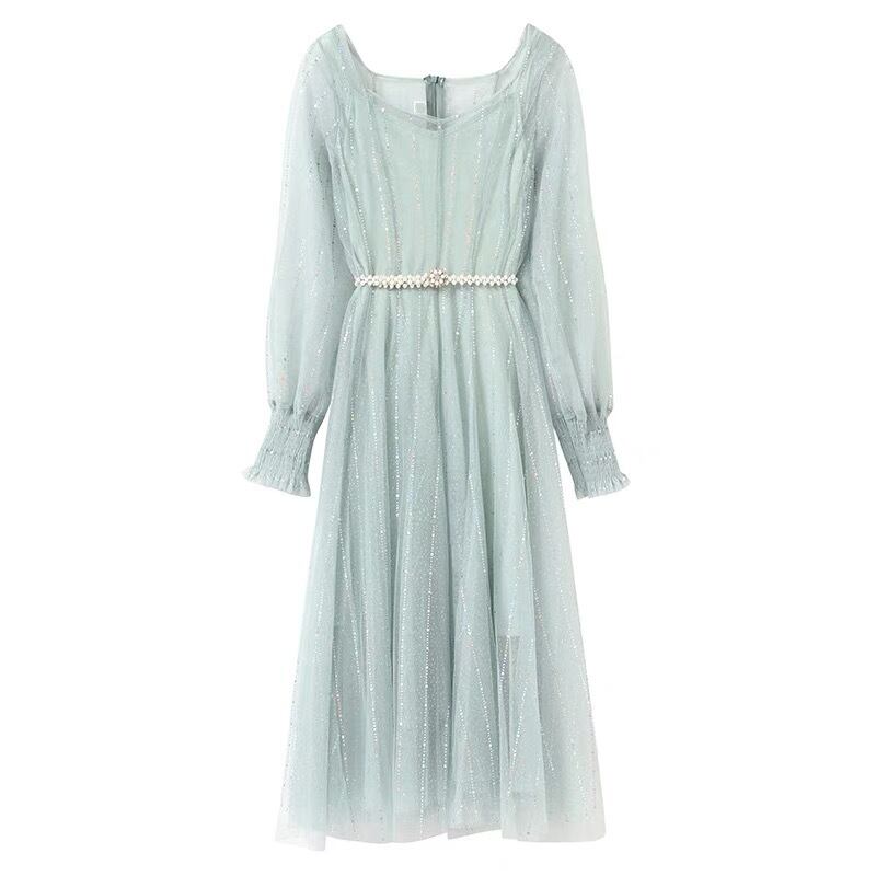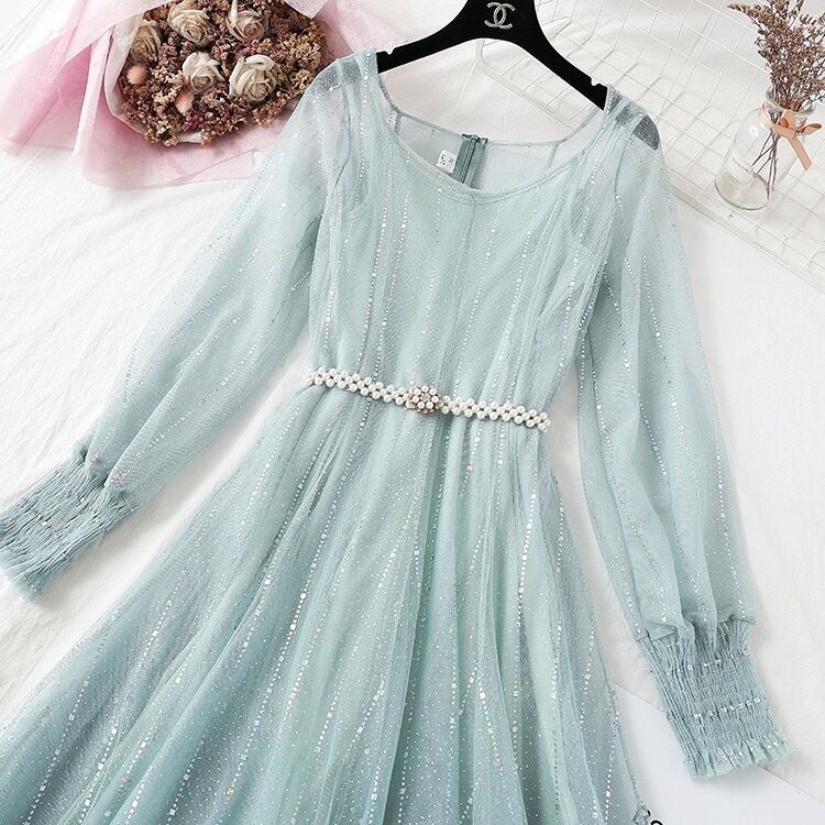 ドレス フェアリー パーティードレス 二次会ドレス 披露宴ドレス カラードレス 膝丈ドレス 演奏会ドレス 袖あり 長袖 ラウンドネック Aライン チュール ベルト ウエストマーク 透け感 かわいい 大人可愛い 上品 おしゃれ ラブリー キュート エレガント 存在感 華やか お姫様 お嬢様 清楚 無地 10代 20代 30代 レディース パーティー イベント ホテル レストラン 韓国系 美脚 プレゼント 新作 モテ 高見え インスタ映え 春 夏 二次会 お呼ばれ サイズ S M L