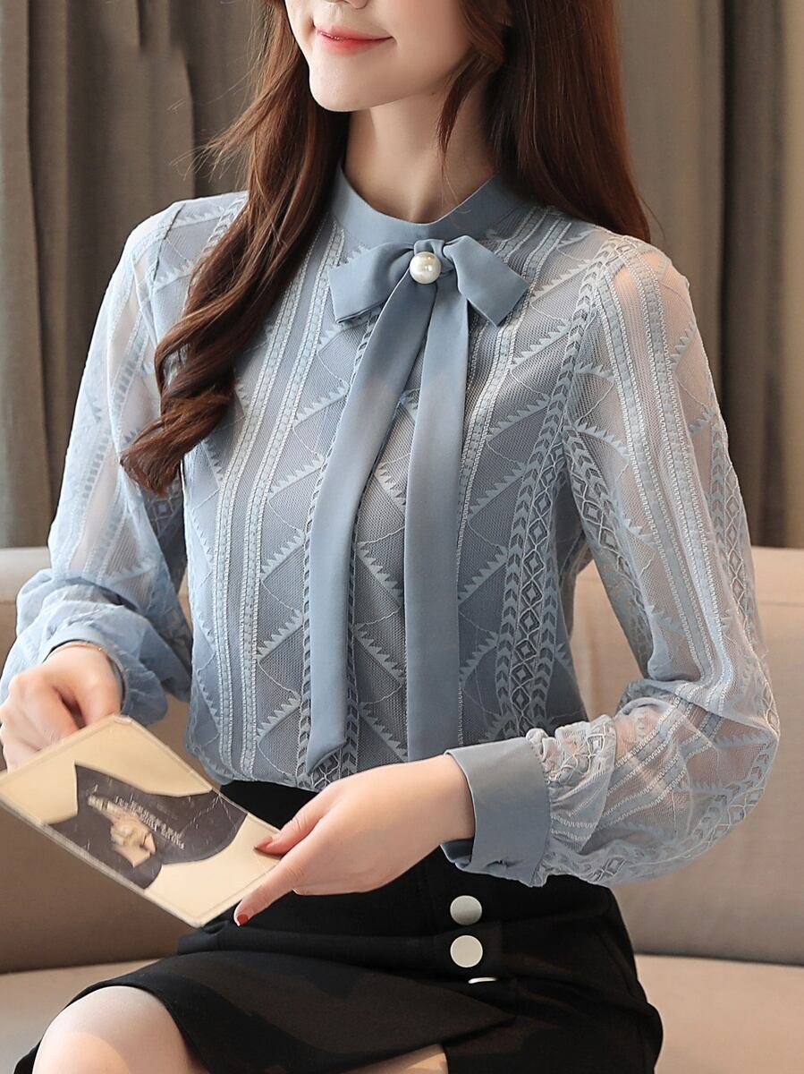 ボウタイブラウス トップス シャツ ブラウス 袖あり 長袖 ハイネック レース リボン かわいい 大人可愛い きれいめ シンプル カジュアル 大人 上品 おしゃれ お洒落 大人可愛い 大人女子 こなれ感 キュート ガーリー モダン 主役級 存在感 無地 春 秋 10代 20代 30代 レディース OL 通勤 学生 通学 デート お出かけ 女子会 休日 着回し 普段使い 重ね着 韓国系 オルチャン サイズ S M L XL 2XL 色展開 青 ブルー