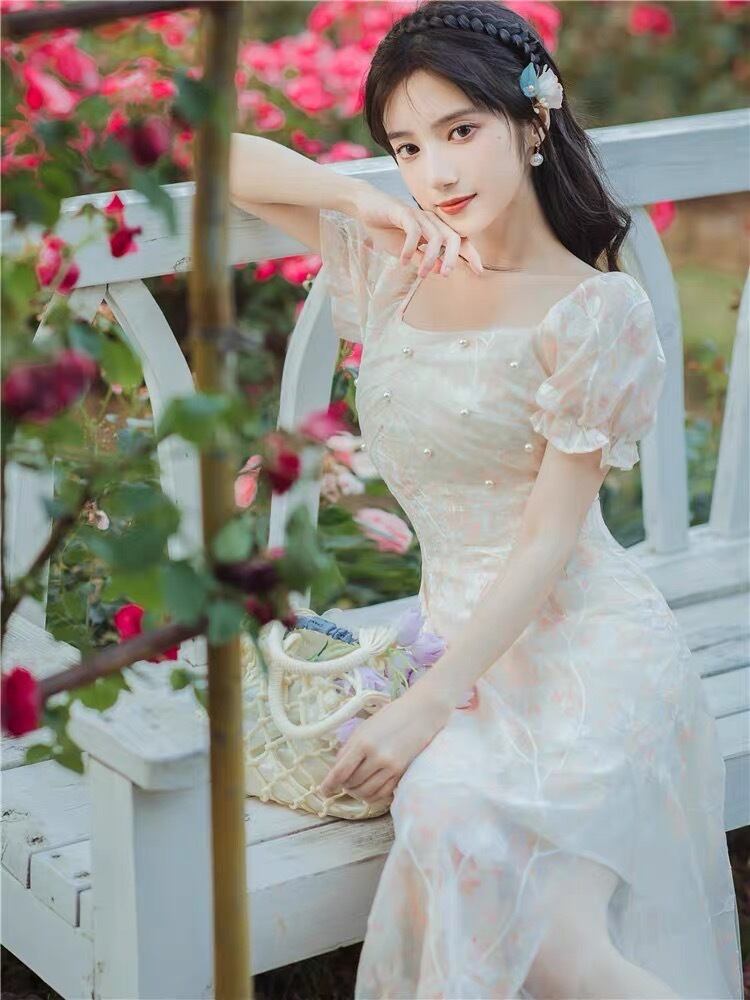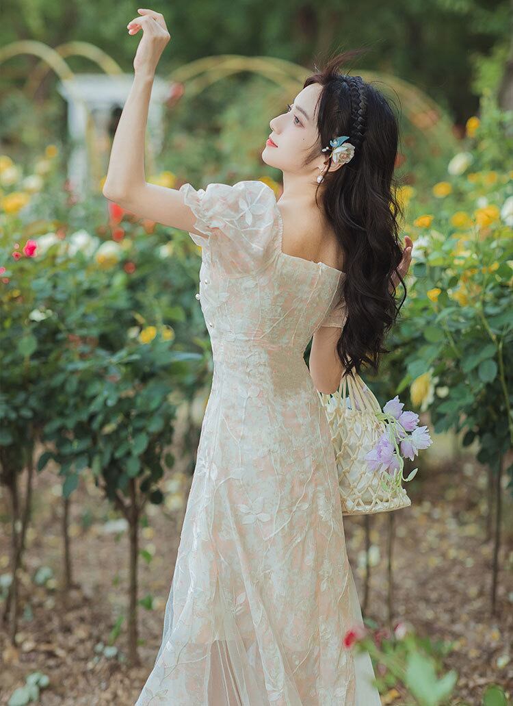 ドレス パーティードレス 二次会ドレス 膝丈ドレス ミニドレス Aラインドレス イブニングドレス ナイトドレス 袖あり 半袖 ランタンスリーブ スクエアネック ハイウエスト 透け感 シースルー 大人可愛い きれいめ 上品 おしゃれ ラブリー キュート エレガント とろみ感 華やか 主役級 お姫様 お嬢様 清楚 リーフ柄 10代 20代 レディース パーティー イベント オルチャン 美脚 脚長 モテ インスタ映え 春 夏 二次会 お呼ばれ サイズ S M L XL 色展開 アプリコット