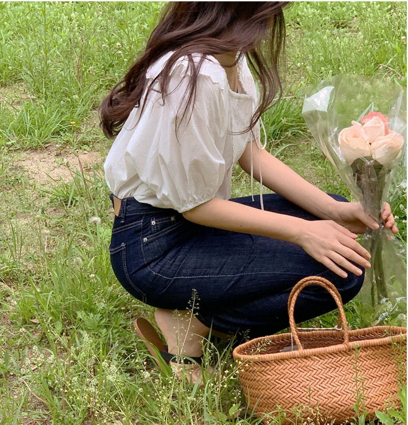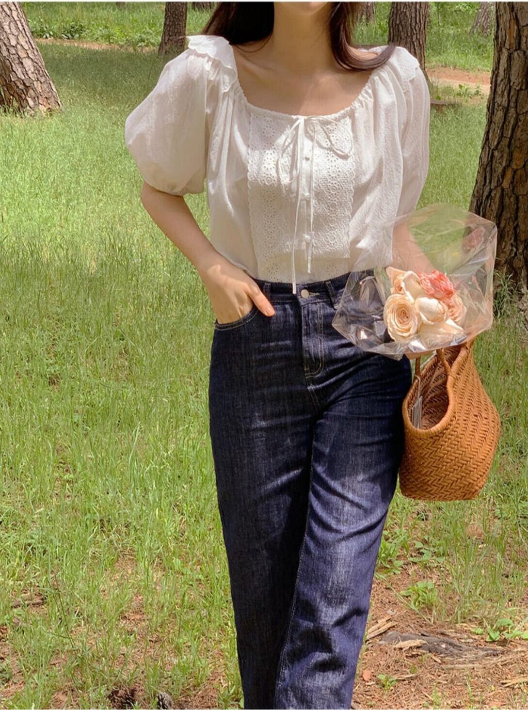 トップス ブラウス 白トップス ミディアム丈 半袖 ボリューム袖 スクエアネック ストレート シフォン リボン 透け感 大人可愛い きれいめ シンプル カジュアル 大人 上品 おしゃれ 大人女子 ラフ キュート ガーリー 柄 春 夏 10代 20代 30代 レディース OL 通勤 学生 通学 デート お出かけ 女子会 お泊まり 休日 旅行 着回し 普段使い S M L ホワイト