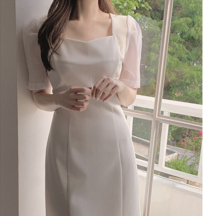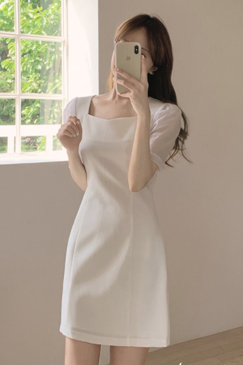 スキニー ホワイトドレス レディース 新しい スタイル 正方形 スカート ワンピース 膝丈 半袖 スクエアネック Aライン ウエストマーク ハイウエスト 大人可愛い きれいめ シンプル 大人 上品 おしゃれ 大人女子 こなれ感 ラブリー キュート 無地 春 夏 10代 20代 30代 レディース オフィス ビジネス OL 通勤 学生 通学 デート お出かけ 女子会 お泊まり 休日 旅行 着回し 普段使い S M L XL ホワイト