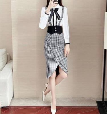 ブラウス&チェックスカートセット 袖あり 長袖 スカート かわいい セットアップ 可愛い きれいめ シンプル 大人 上品 おしゃれ 大人可愛い こなれ感 キュート 存在感 爽やか ナチュラル 無地 春 夏 シーズンレス 誕生日 結婚式 10代 20代 30代 40代 50代 レディース ママ オフィス 通勤 通学 デート お出かけ 公園デビュー 女子会 パーティー イベント ガーデン レストラン 着回し ファッション コーデ スタイル モテ プレゼント 定番 流行 インスタ映え サイズ 白 黒