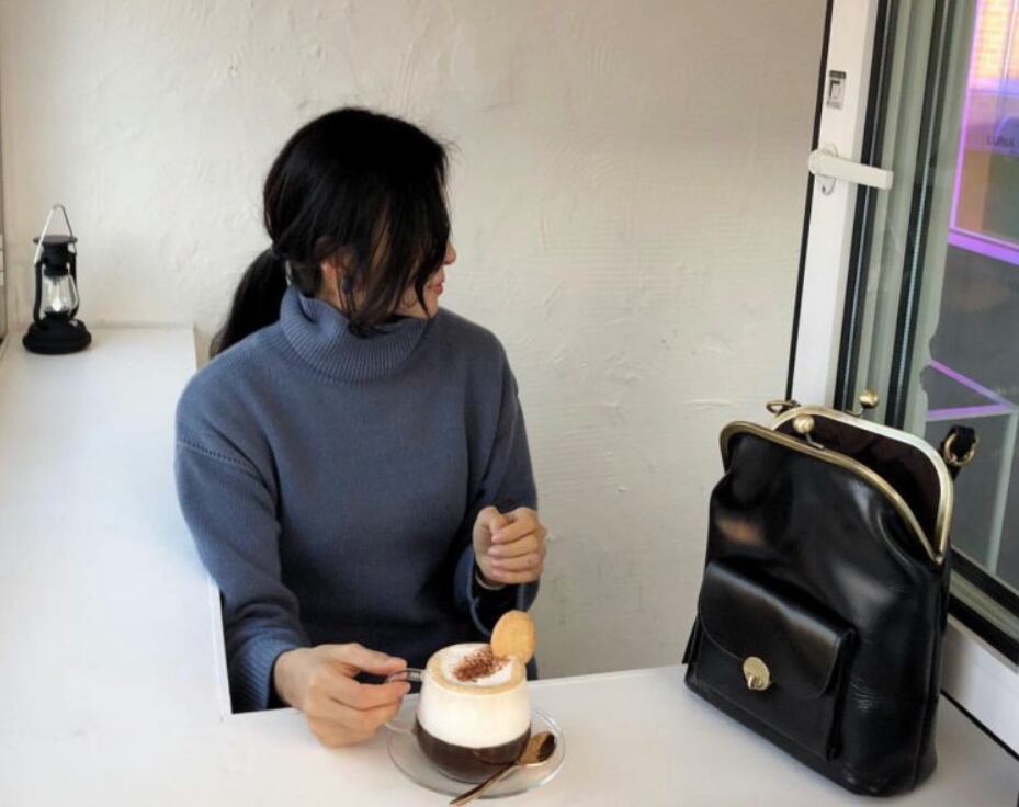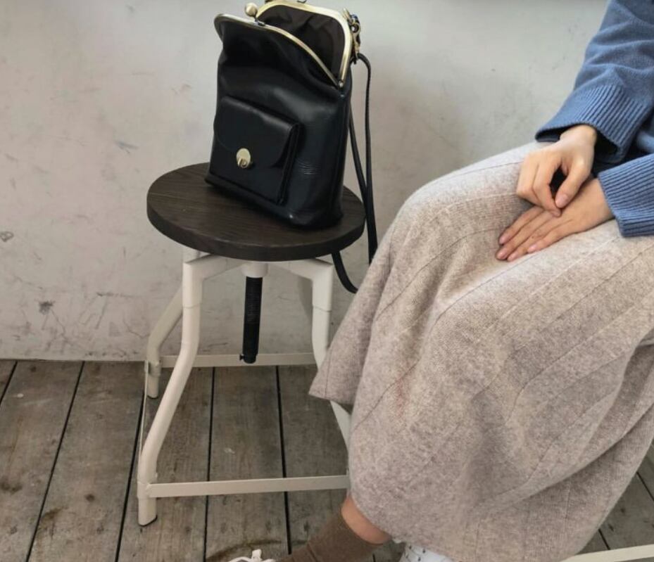 マットな質感で高級感のあるがま口ポシェット。