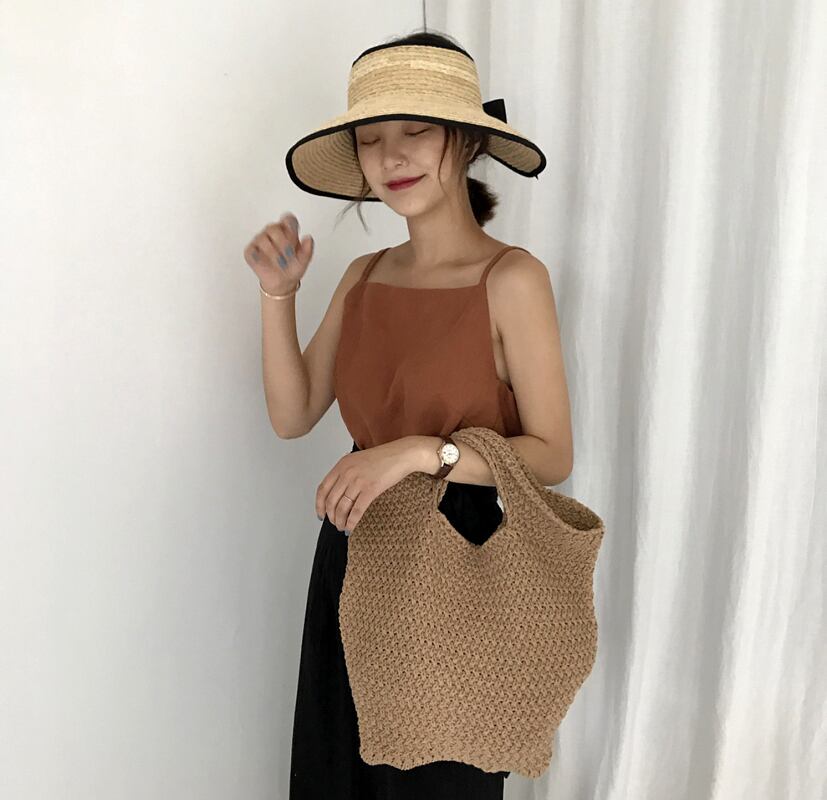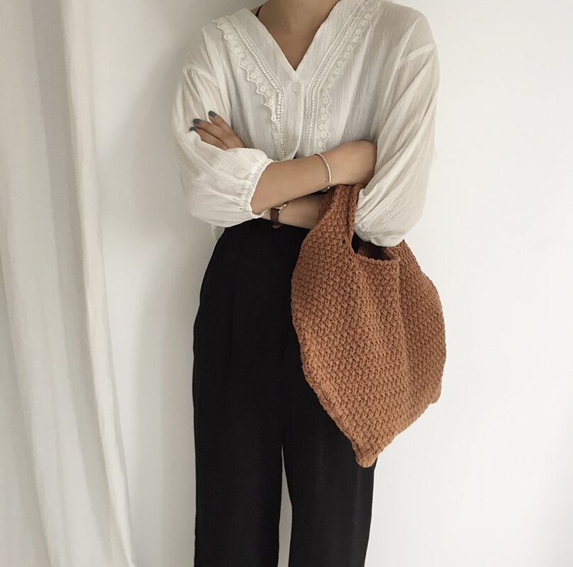 くたっとしたシルエットがこなれ感を感じさせる麻編みバッグ。