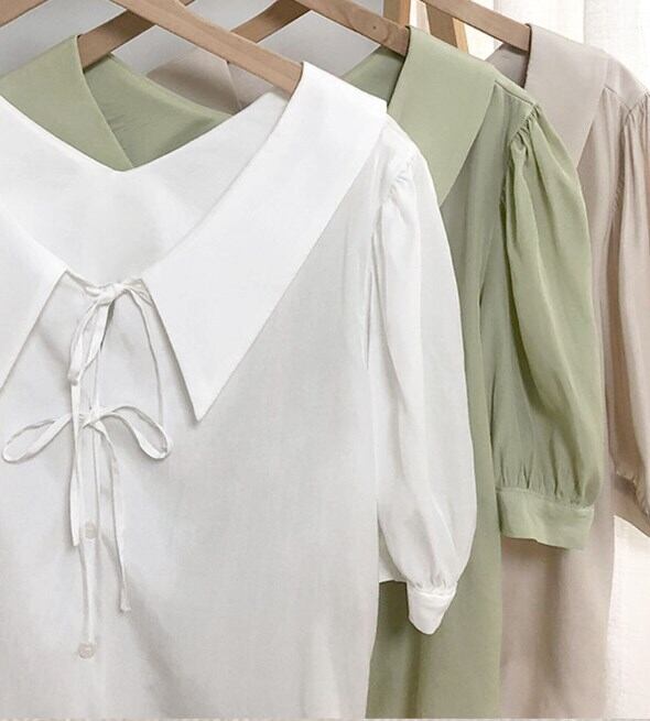 韓国夏エレガントラペルストラップシャツブラウス女性 トップス シャツ 白シャツ ミディアム丈 半袖 バブルスリーブ Vネック 襟付き ドールカラー ストレート リボン 前開き 大人可愛い きれいめ シンプル カジュアル 大人 上品 おしゃれ 大人女子 こなれ感 ラフ キュート ガーリー 無地 春 夏 10代 20代 30代 レディース OL 通勤 学生 通学 デート お出かけ 女子会 お泊まり 休日 旅行 着回し 普段使い S M L XL ホワイト