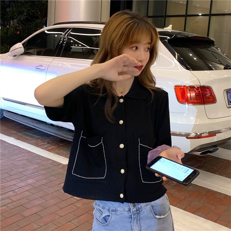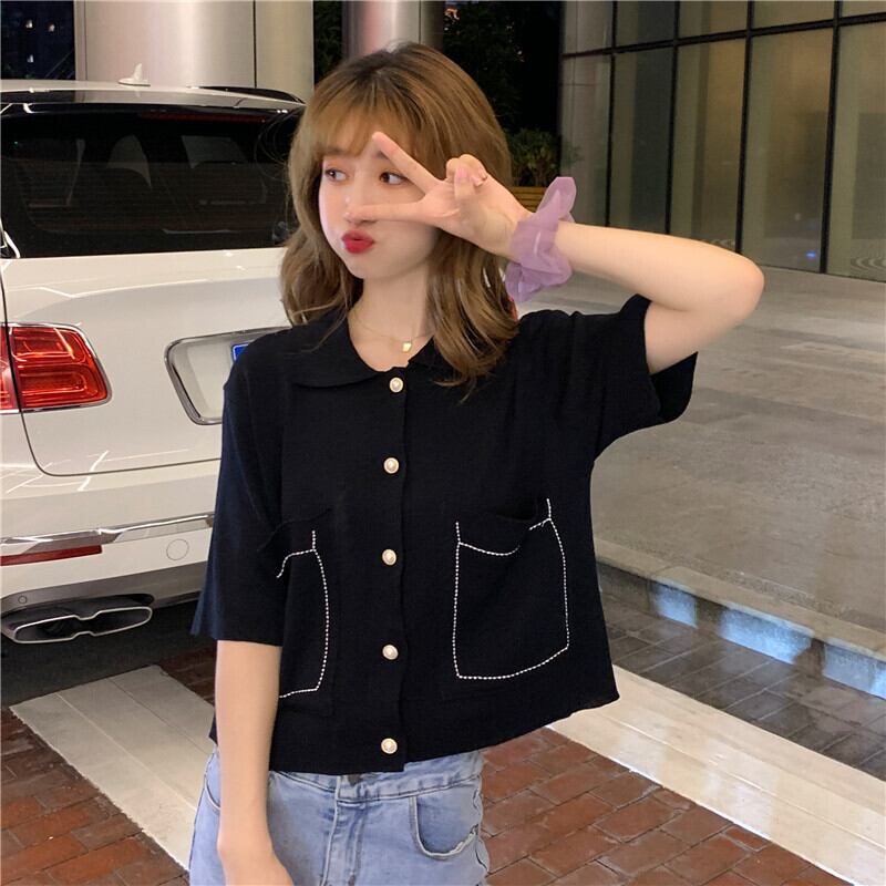 秋ニットシャツアカデミースタイルシングルドローバックPOLOシャツアイスシルクトップスレディースラペルデザインカーディガン トップス シャツ カーディガン 白トップス ミディアム丈 半袖 Vネック 襟付き ストレート ポケット 前開き 大人可愛い きれいめ シンプル カジュアル おしゃれ レトロ 大人女子 こなれ感 ラフ キュート 無地 夏 10代 20代 30代 レディース OL 通勤 学生 通学 デート お出かけ 女子会 お泊まり 休日 旅行 着回し 普段使い S M L XL ホワイト ブラック