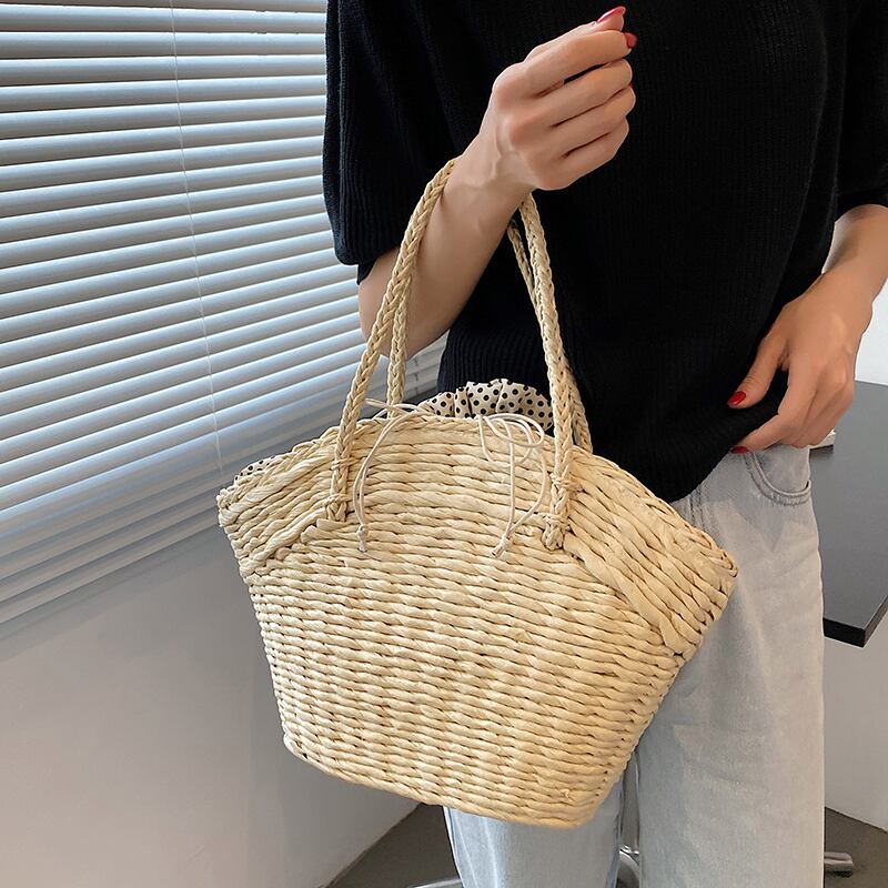 丁寧に編み込まれたナチュラルなかごバッグ。