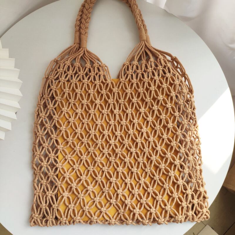 コットンロープで作った手編み風のおおきめハンドバッグ。