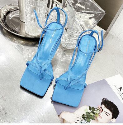 スクエアトゥのハイヒールデザインがおしゃれなサンダル。