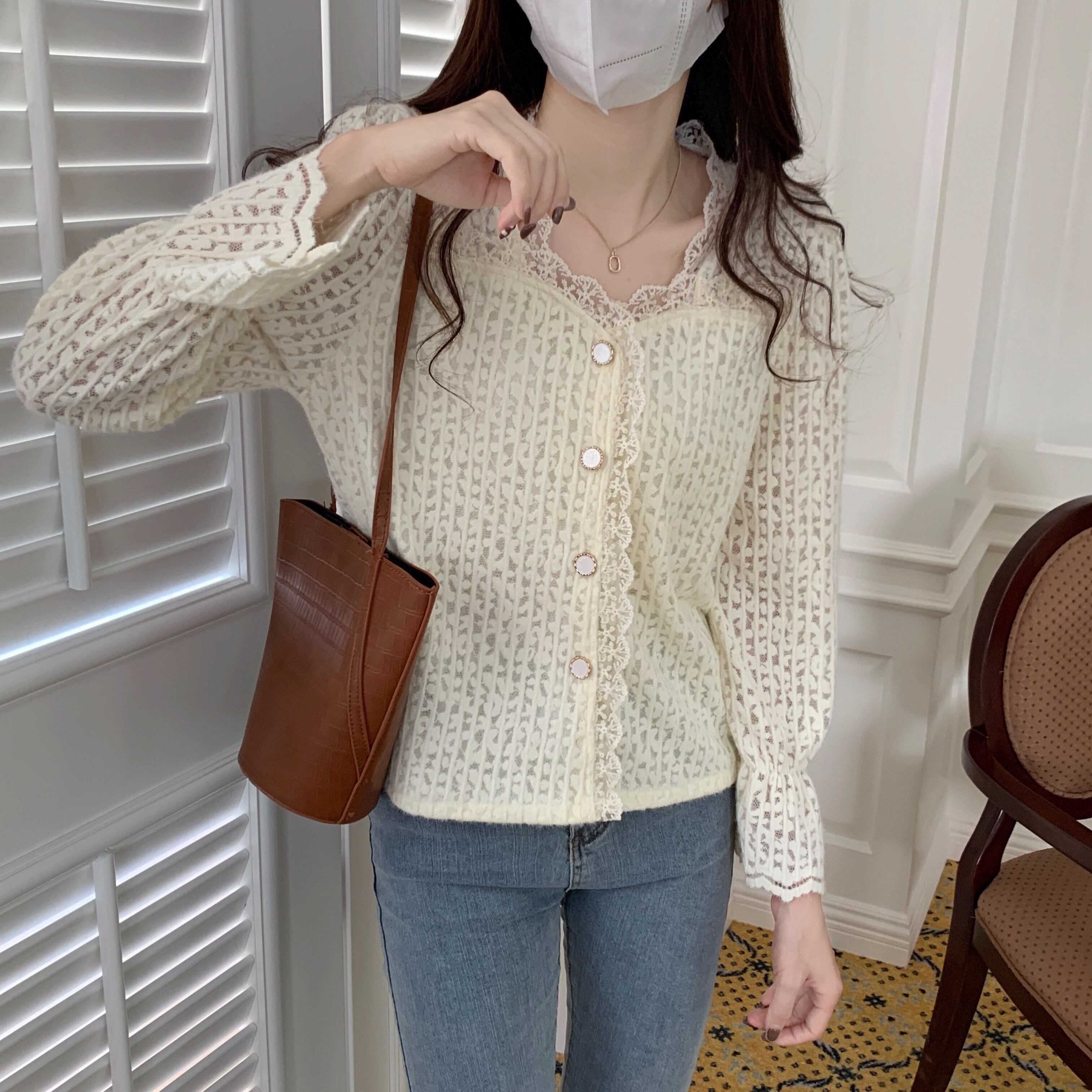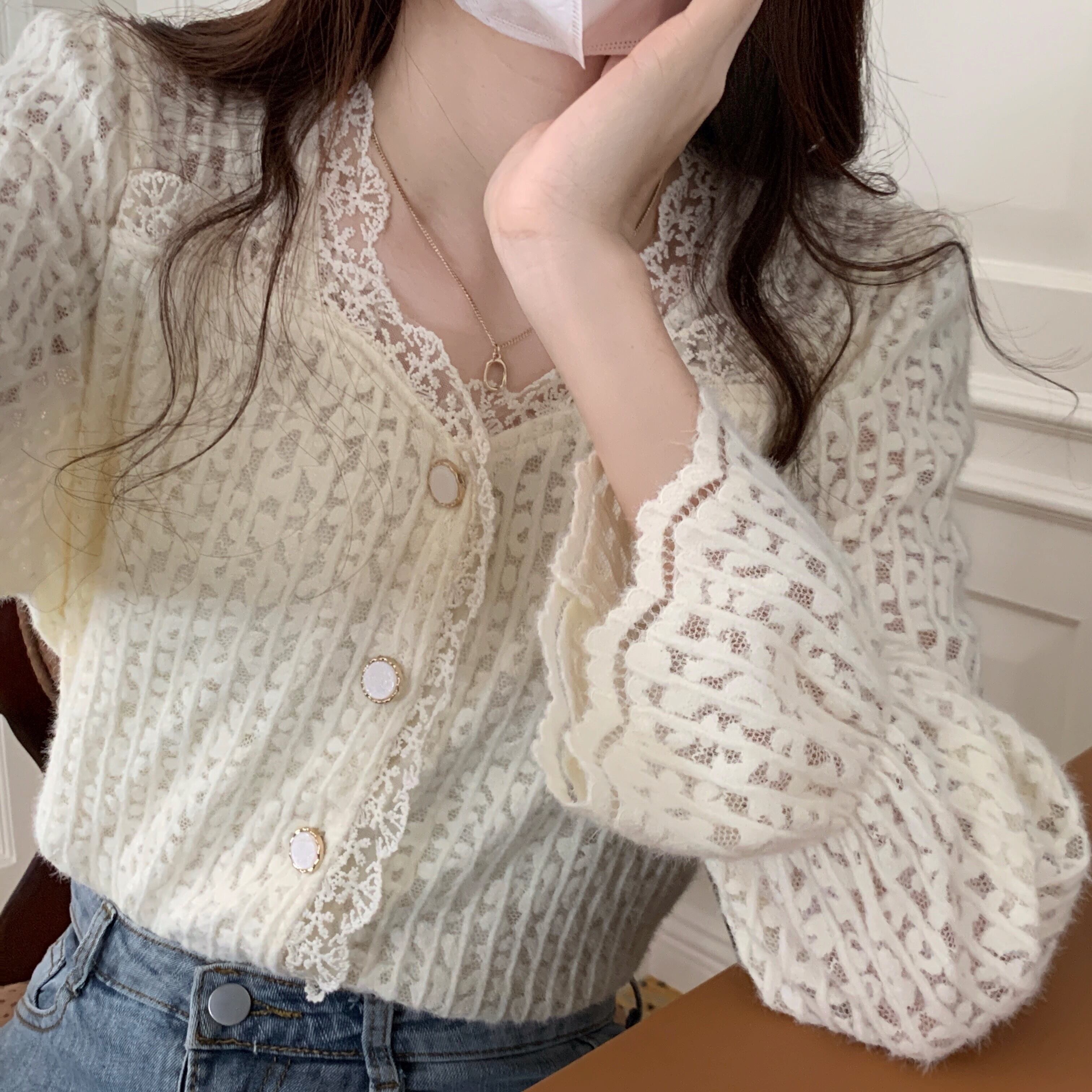 羽織にもトップスにもなる大人ナチュラルスタイルに欠かせないクロップド丈のレースカーディガン。