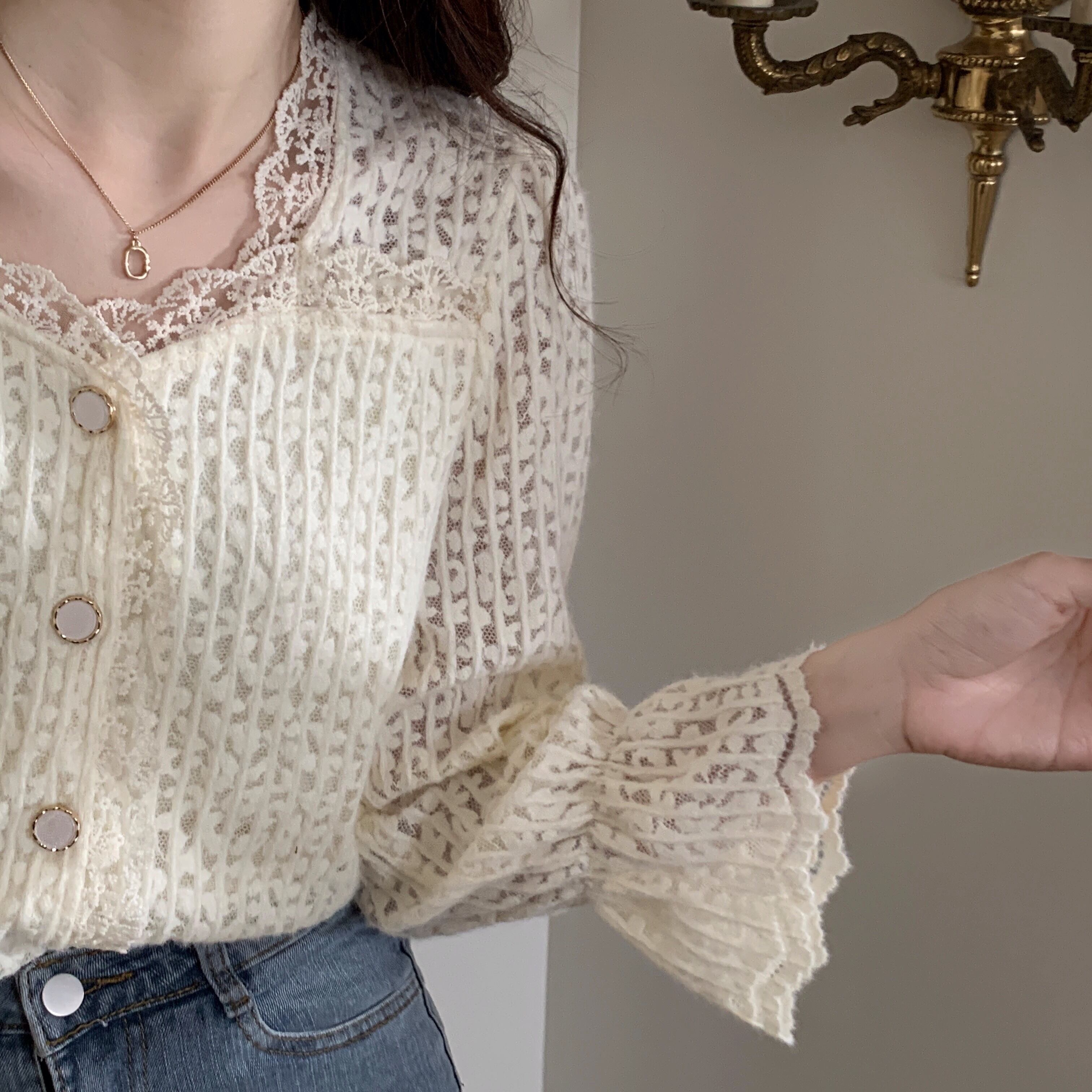 キュートでガーリーなレースカーディガン。