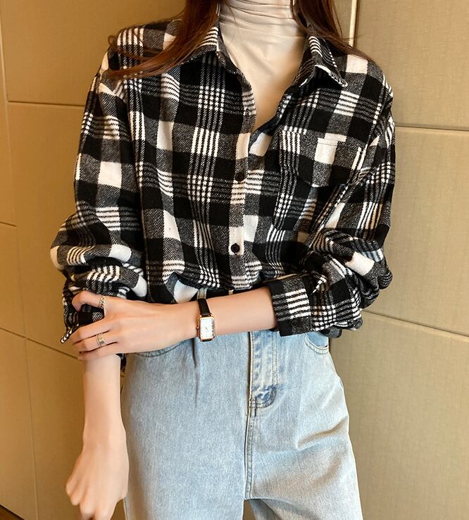 チェック柄シャツ トップス シャツ ブラウス 袖あり 長袖 襟付き 前開き かわいい 大人可愛い きれいめ シンプル カジュアル 大人 上品 おしゃれ お洒落 大人可愛い 大人女子 こなれ感 ボーイッシュ スポーティー 個性的 クール 主役級 存在感 柄 チェック柄 春 秋 10代 20代 30代 レディース OL 通勤 学生 通学 デート お出かけ 公園デビュー 女子会 休日 着回し 普段使い 重ね着 韓国系 オルチャン サイズ S M L XL 2XL 色展開 黒 ブラック 茶色