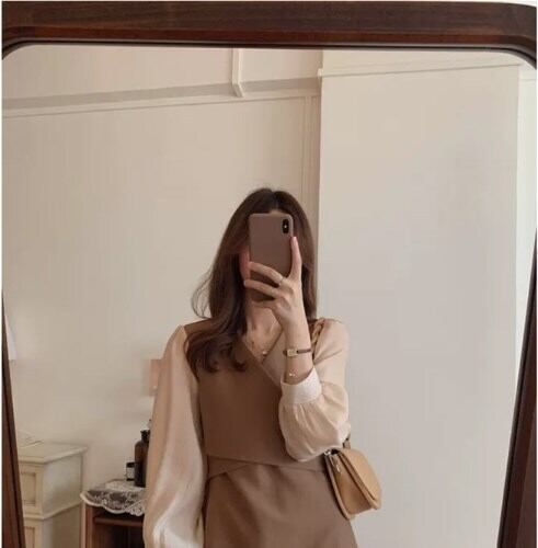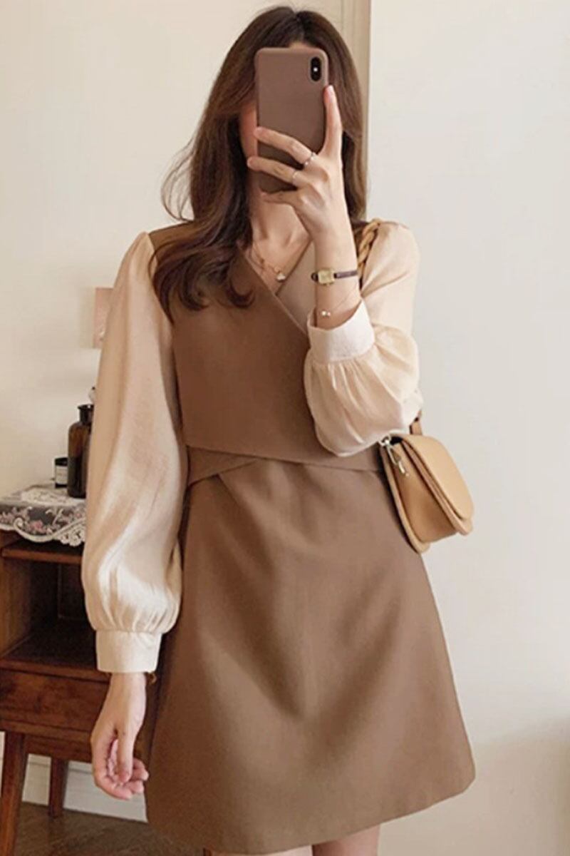ブレイクストリート ヴィンテージ ドレス レディース 春秋 ボトムスカート ワンピース ショート丈 膝上 長袖 ボリューム袖 Vネック ストレート ウエストマーク ハイウエスト 大人可愛い きれいめ シンプル カジュアル 大人 おしゃれ レトロ ラフ キュート 無地 春 秋 10代 20代 30代 レディース OL 通勤 学生 通学 デート お出かけ 女子会 お泊まり 休日 旅行 普段使い S M L XL ブラック ブラウン