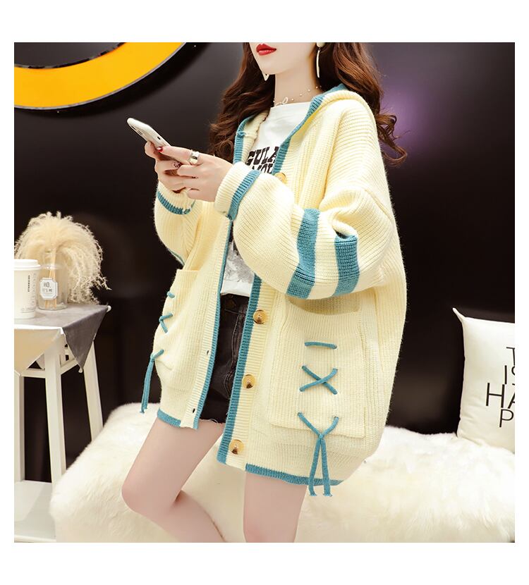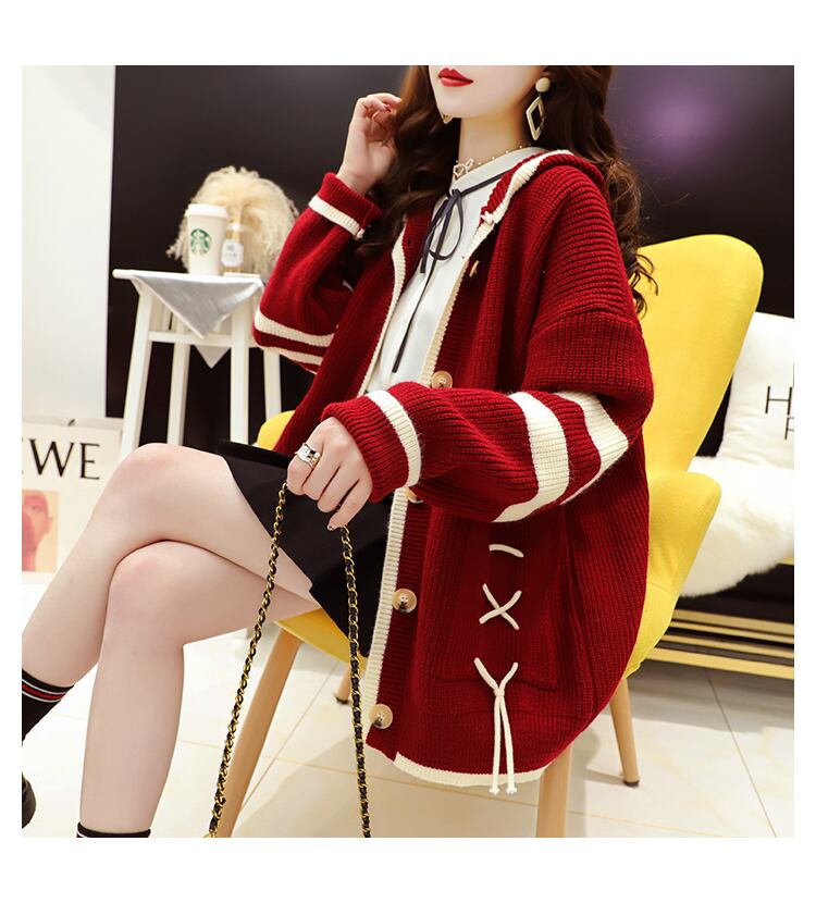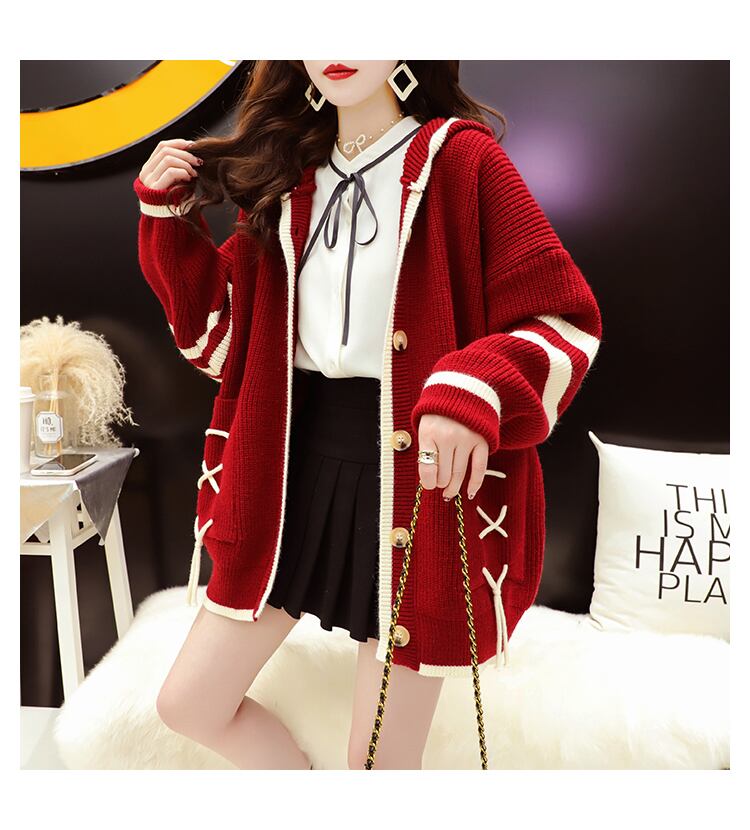 セーターカーディガン 女性 リラックス 春 秋 ニットコート トップス アウター カーディガン ミディアム丈 長袖 ボリューム袖 萌袖 ワイド フード付き 前開き ニット 大人可愛い カジュアル おしゃれ 大人女子 ラフ ラブリー キュート ボーダー 秋 冬 10代 20代 30代 レディース OL 学生 通学 デート お出かけ 女子会 お泊まり 休日 旅行 着回し 普段使い 重ね着 楽ちん S M L XL 2XL ホワイト レッド