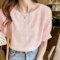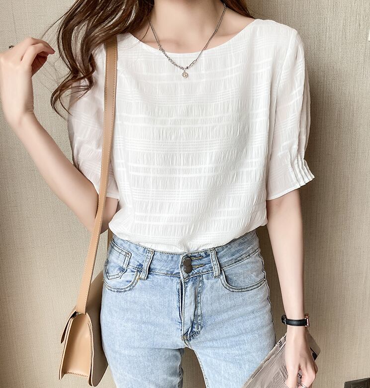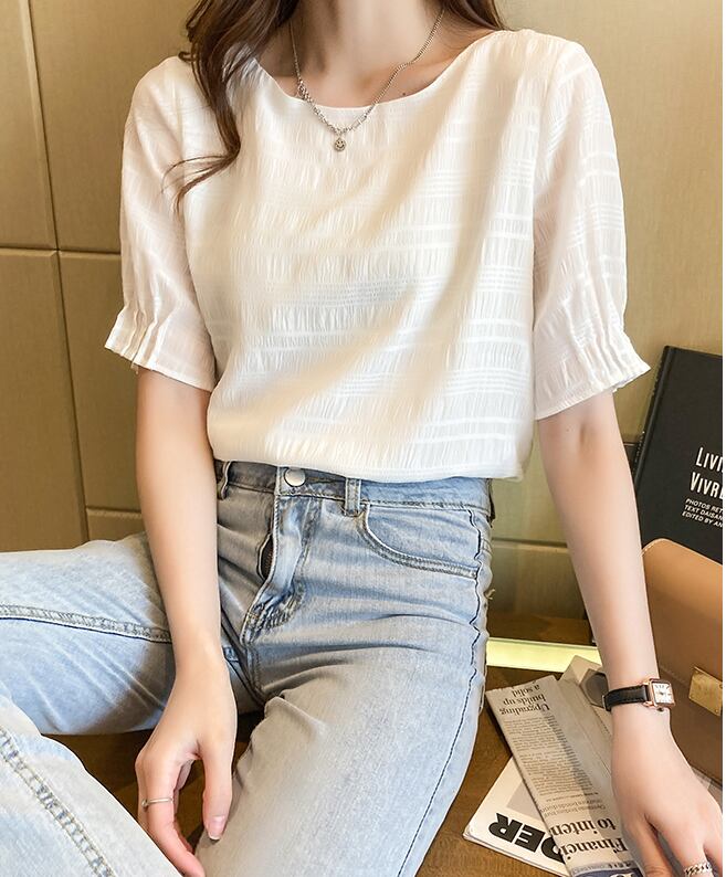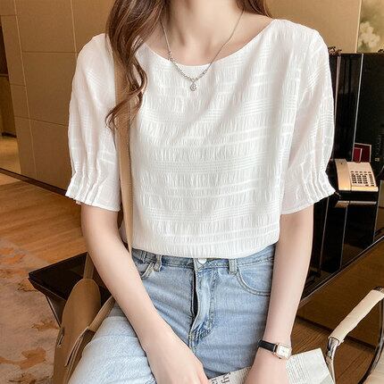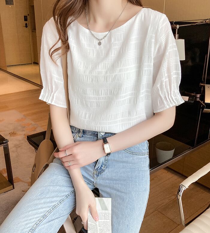半袖ブラウス トップス ブラウス 袖あり 半袖 パフスリーブ ラウンドネック かわいい 大人可愛い きれいめ シンプル カジュアル 大人 上品 おしゃれ お洒落 大人可愛い 大人女子 こなれ感 ラブリー キュート ガーリー 個性的 主役級 存在感 無地 春 夏 秋 10代 20代 30代 レディース OL 通勤 学生 通学 デート お出かけ 公園デビュー 女子会 休日 着回し 普段使い 重ね着 韓国系 オルチャン サイズ S M L XL 2XL 色展開 白 ホワイト ピンク