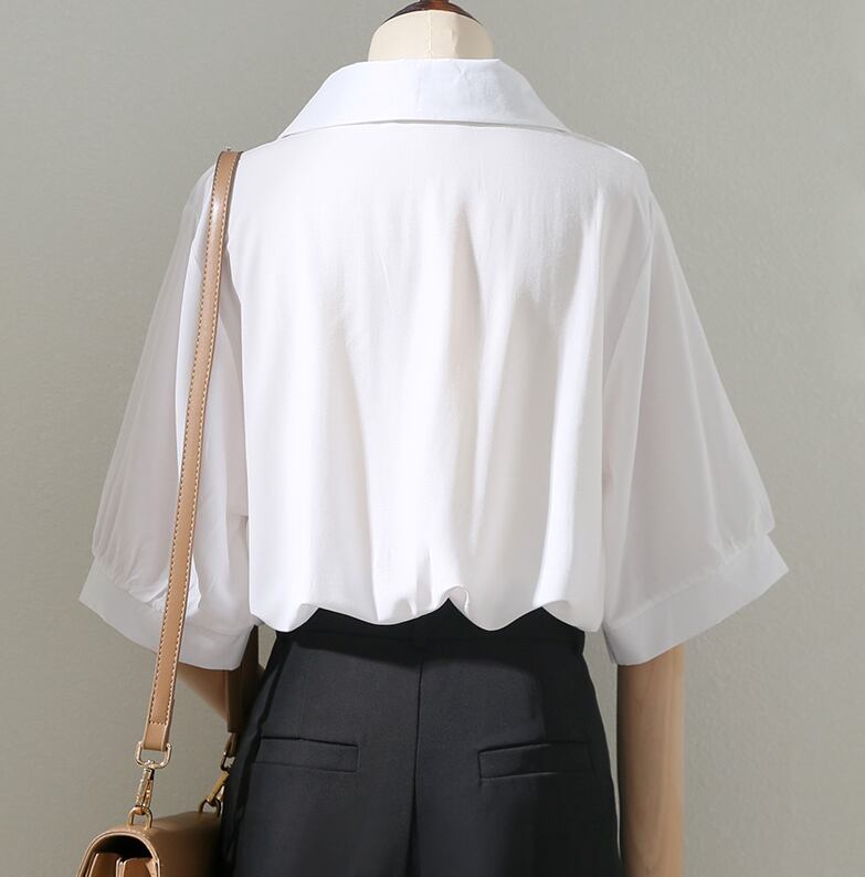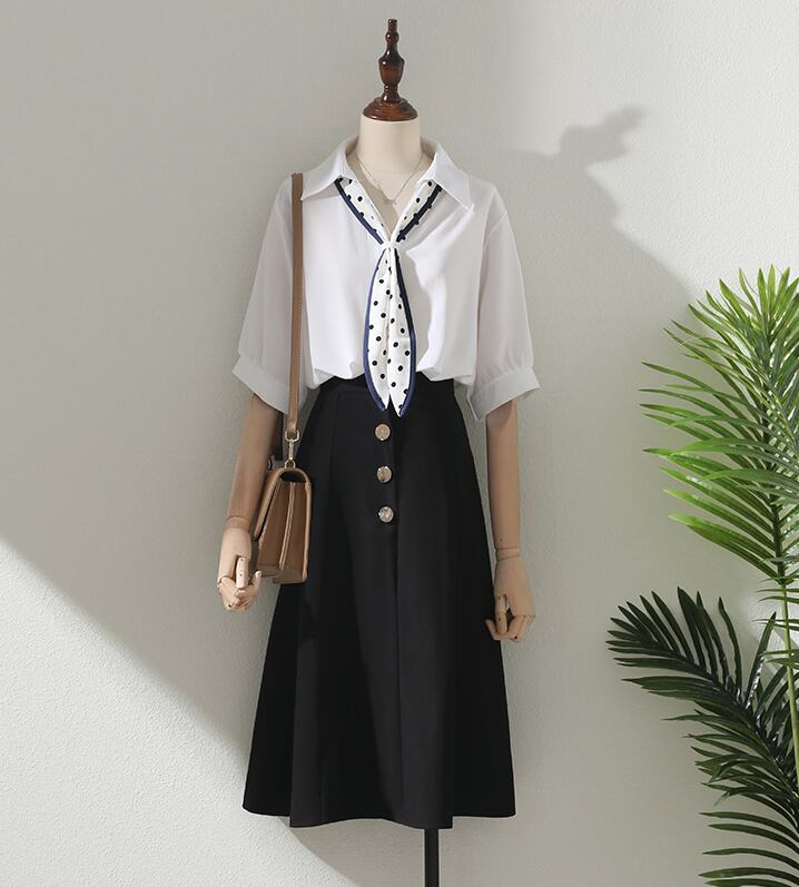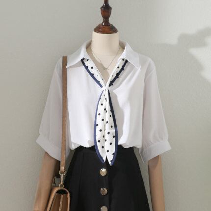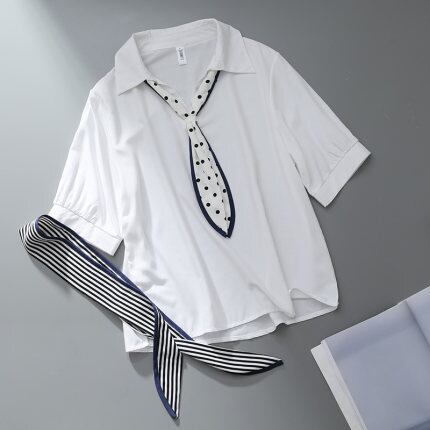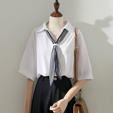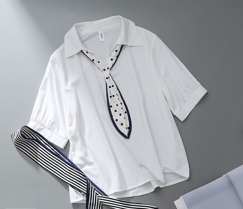 スカーフ付きブラウス トップス シャツ ブラウス 袖あり 半袖 Vネック 襟付き ポリエステル かわいい 大人可愛い きれいめ シンプル カジュアル 大人 上品 おしゃれ お洒落 大人可愛い 大人女子 こなれ感 ラブリー キュート ガーリー 個性的 主役級 存在感 無地 柄 春 夏 秋 10代 20代 30代 レディース OL 通勤 学生 通学 デート お出かけ 公園デビュー 女子会 休日 着回し 普段使い 重ね着 韓国系 オルチャン サイズ S M L XL 2XL 白 ホワイト