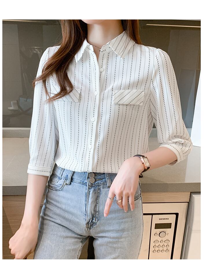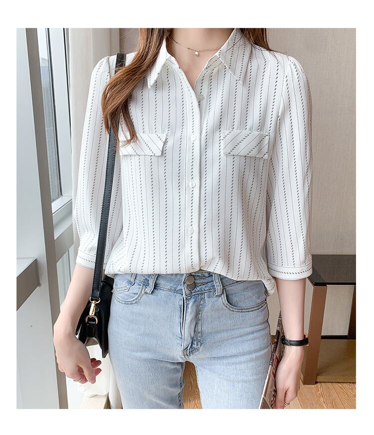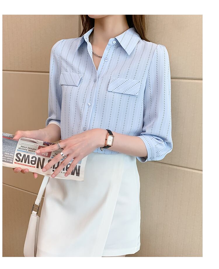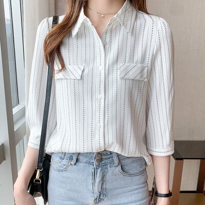 ストライプ柄シャツ トップス シャツ ブラウス 袖あり 7分袖 七分袖 襟付き 前開き かわいい 大人可愛い きれいめ シンプル カジュアル 大人 上品 おしゃれ お洒落 大人可愛い 大人女子 こなれ感 ラブリー キュート ガーリー 個性的 主役級 存在感 柄 ストライプ 春 夏 秋 10代 20代 30代 レディース OL 通勤 学生 通学 デート お出かけ 公園デビュー 女子会 休日 着回し 普段使い 重ね着 韓国系 オルチャン サイズ S M L XL 2XL 色展開 白