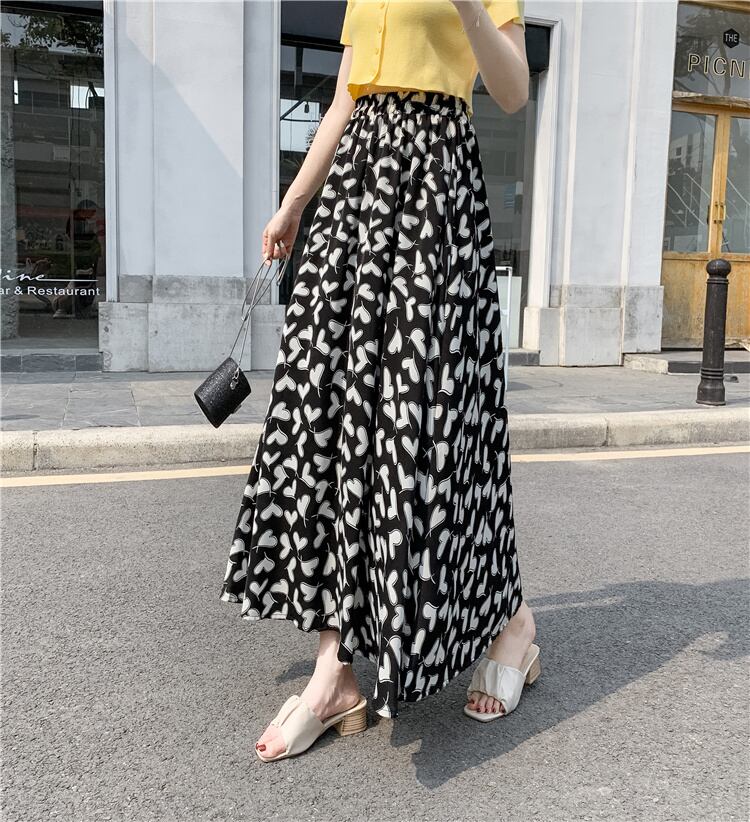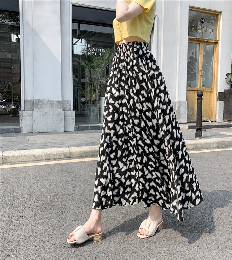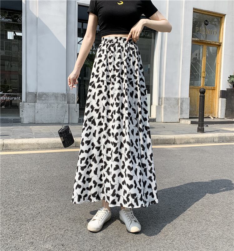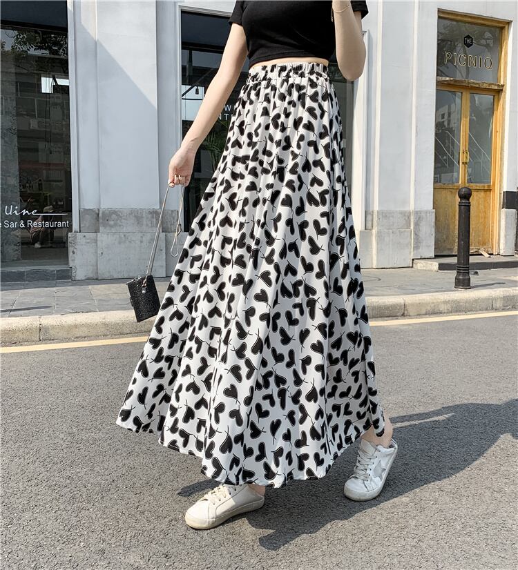ハート柄フレアスカート スカート ボトムス フレアスカート ロング ロング丈 フレア Aライン ハイウエスト ウエストゴム かわいい 大人可愛い きれいめ シンプル カジュアル 大人 上品 おしゃれ お洒落 大人可愛い 大人女子 こなれ感 ラブリー キュート ガーリー 個性的 主役級 存在感 柄 春 夏 秋 10代 20代 30代 レディース 学生 通学 デート お出かけ 公園デビュー 女子会 休日 着回し 普段使い 重ね着 韓国系 オルチャン サイズ S M L XL 色展開 白 ホワイト 黒 ブラック