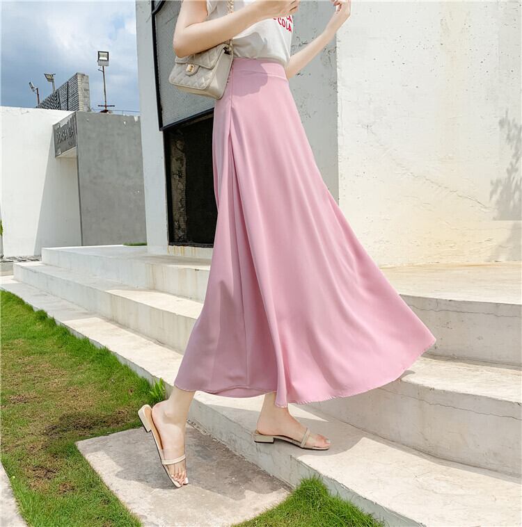 カラーバリエーション豊富なシンプルナチュラルロングスカート。