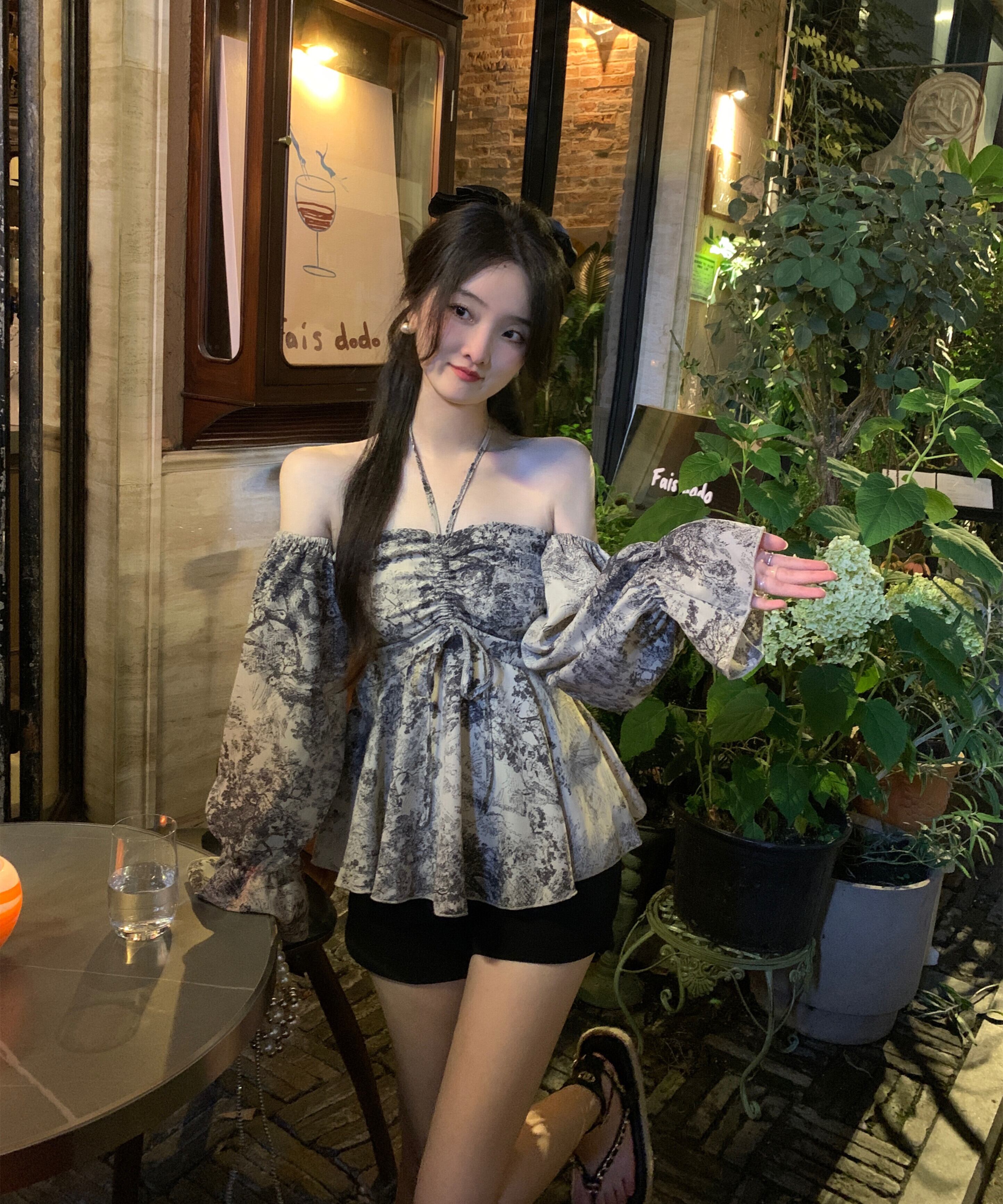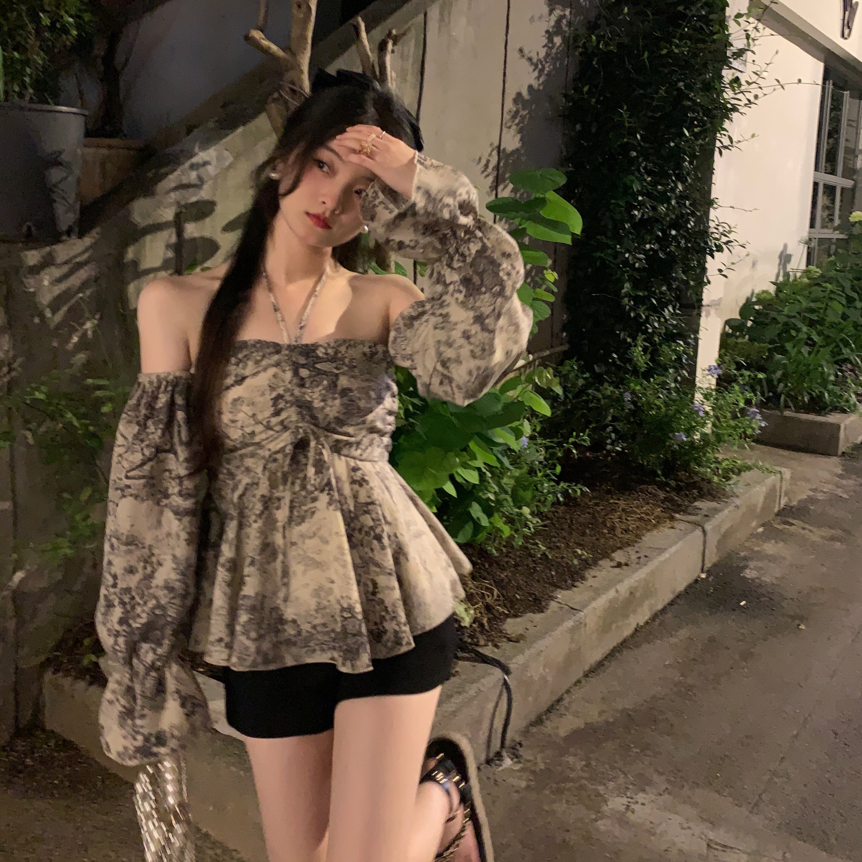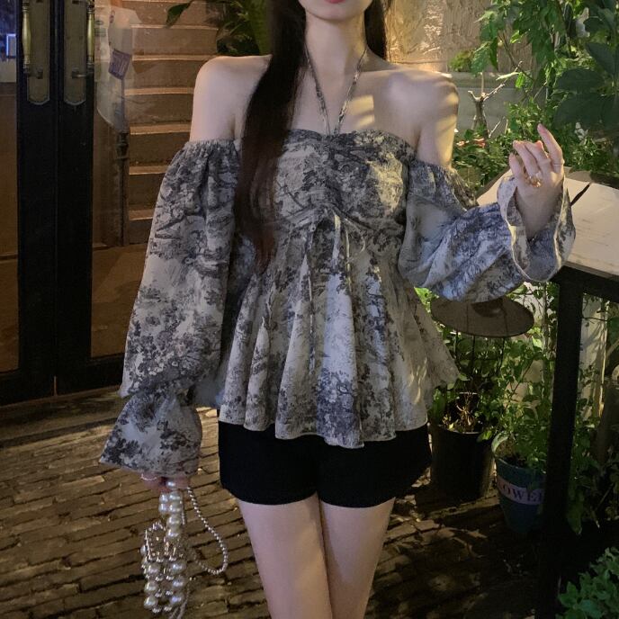 オフショルブラウス トップス ブラウス 袖あり 長袖 オフショルダー オフショル シフォン かわいい 大人可愛い きれいめ シンプル カジュアル 大人 上品 おしゃれ お洒落 大人可愛い 大人女子 こなれ感 ラブリー キュート ガーリー 個性的 主役級 存在感 柄 花柄 春 夏 秋 10代 20代 30代 レディース 学生 通学 デート お出かけ 公園デビュー 休日 着回し 普段使い 重ね着 サイズ S M 色展開 灰色 グレー
