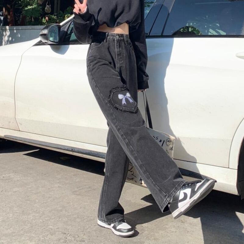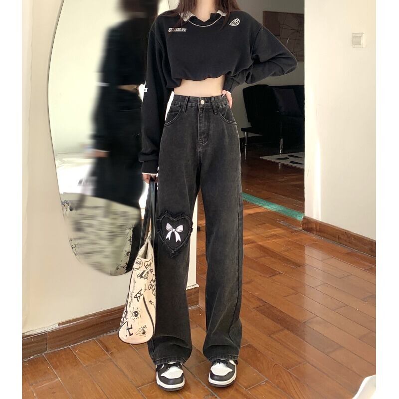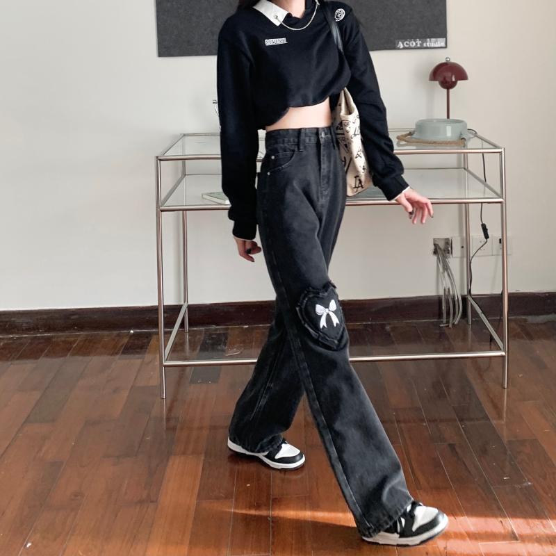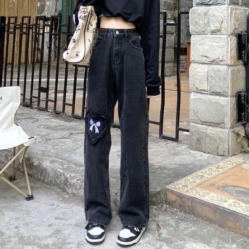 デニムパンツ ボトムス パンツ デニムパンツ ロング ロング丈 ストレート リボン ハイウエスト デニム かわいい 大人可愛い きれいめ シンプル カジュアル 大人 上品 おしゃれ お洒落 大人可愛い 大人女子 こなれ感 ラブリー キュート ガーリー 個性的 主役級 存在感 無地 春 夏 秋 10代 20代 30代 レディース 学生 通学 デート お出かけ 公園デビュー 休日 着回し 普段使い 韓国系 オルチャン サイズ S M L 色展開 黒 ブラック