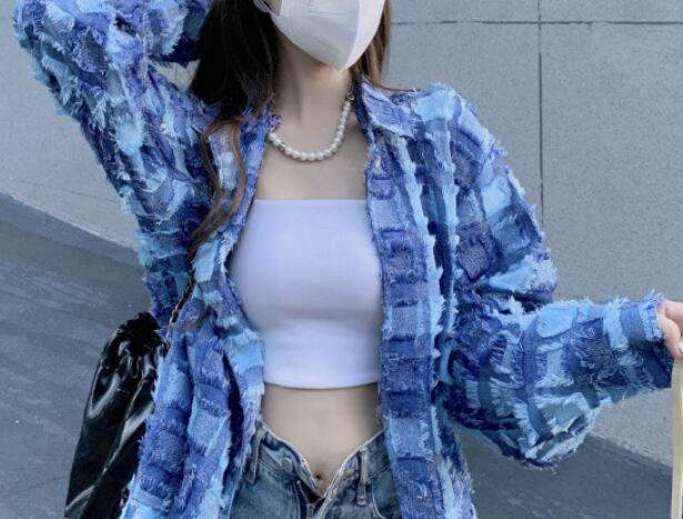 ダメージ加工のロング長袖シャツです。
