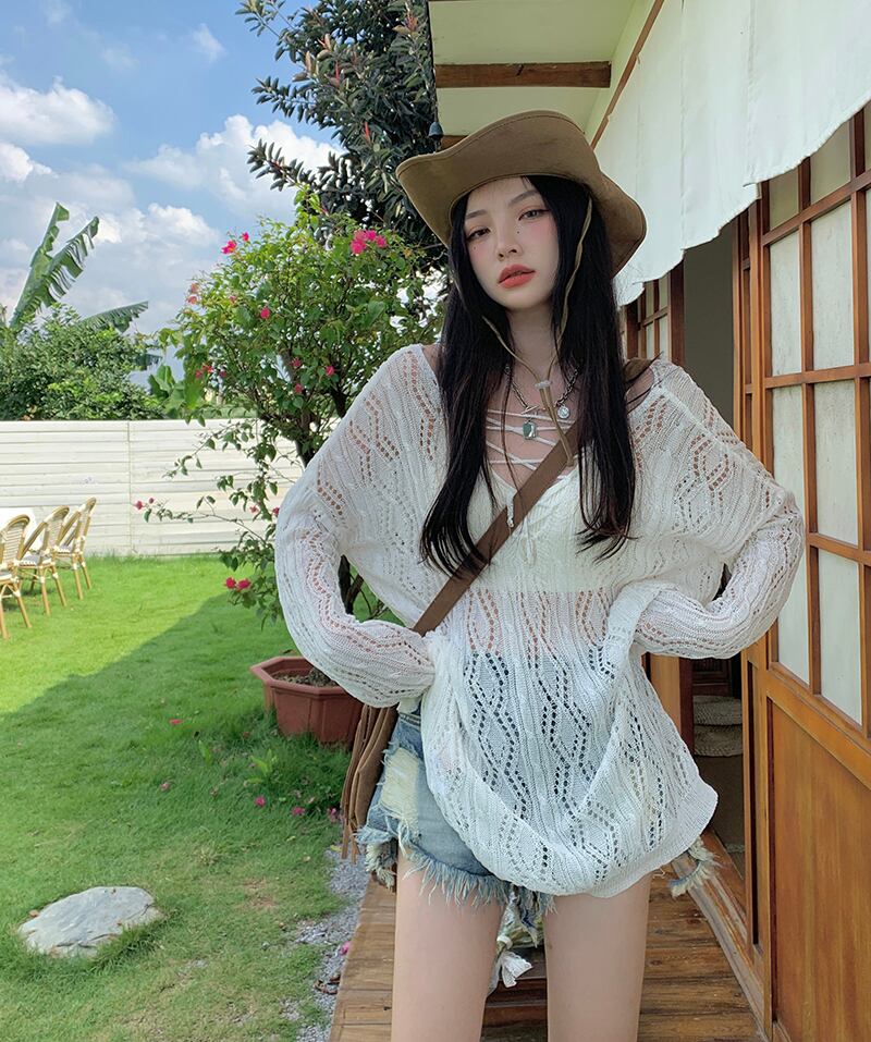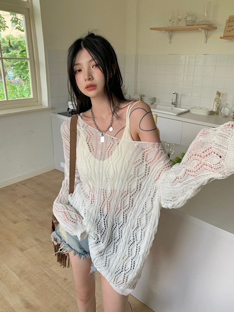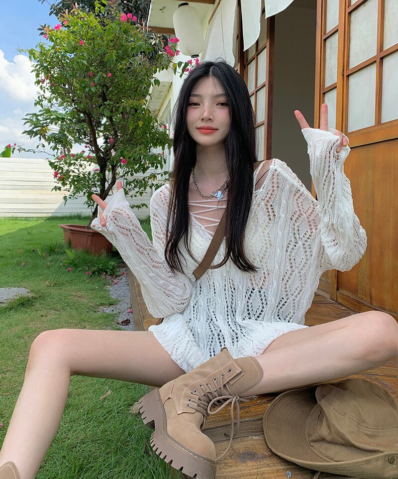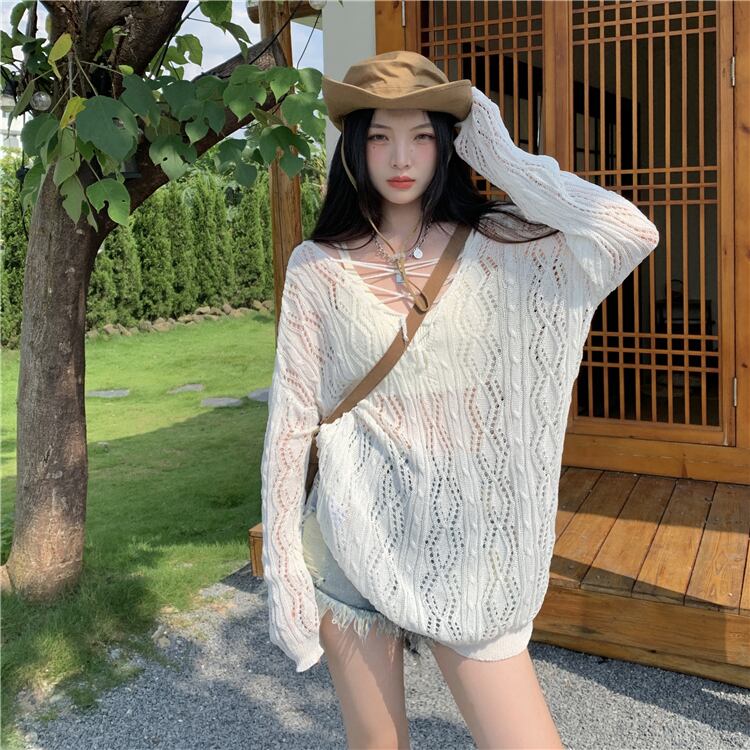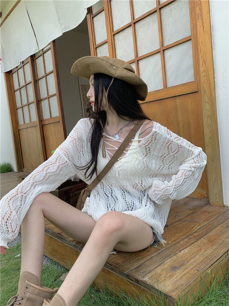 ホワイト オープン ドローストリング ストラップ v カラー 日焼け止めニット セーター 女性夏早秋ブラウス トップス トップス ニットソー セーター ショート丈 ミディアム丈 長袖 Vネック ストレート 編み込み 透け感 大人可愛い きれいめ シンプル カジュアル 大人 おしゃれ 大人女子 ラフ キュート ガーリー 無地 柄 春 夏 10代 20代 30代 40代 OL 通勤 学生 通学 デート お出かけ 女子会 お泊まり 休日 リゾート 旅行 海 プール 高原 ガーデン 着回し 普段使い ホワイト
