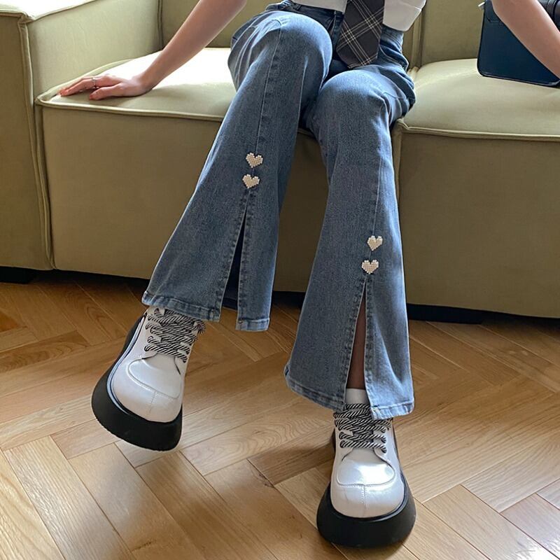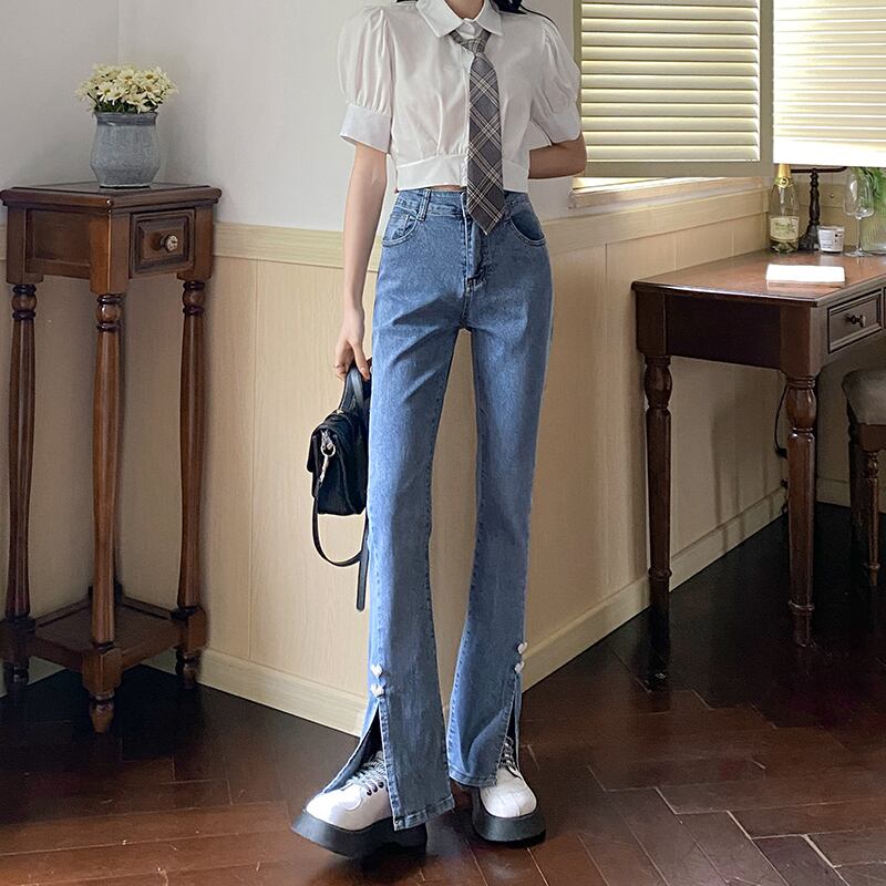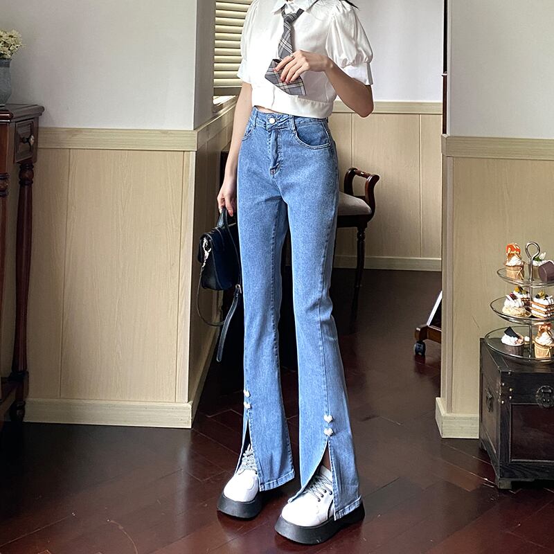 デニムフレアパンツ ボトムス パンツ デニムパンツ ロング ロング丈 フレア セミフレア スリット ハイウエスト デニム かわいい 大人可愛い きれいめ シンプル カジュアル 大人 上品 おしゃれ お洒落 大人可愛い 大人女子 こなれ感 個性的 クール 主役級 存在感 無地 春 夏 秋 10代 20代 30代 レディース 学生 通学 デート お出かけ 公園デビュー 休日 着回し 普段使い 韓国系 オルチャン サイズ S M L XL 2XL 色展開 青 ブルー