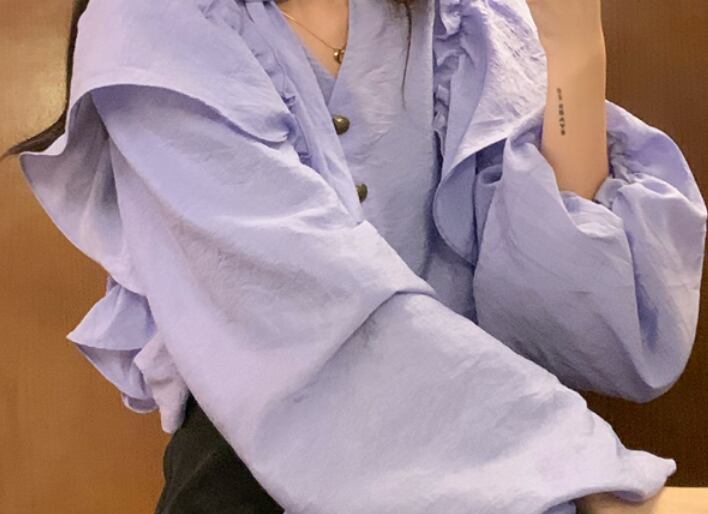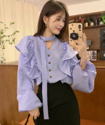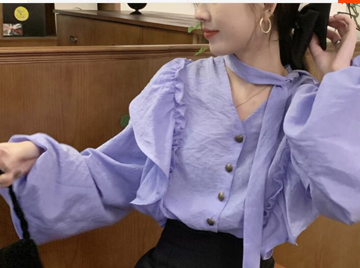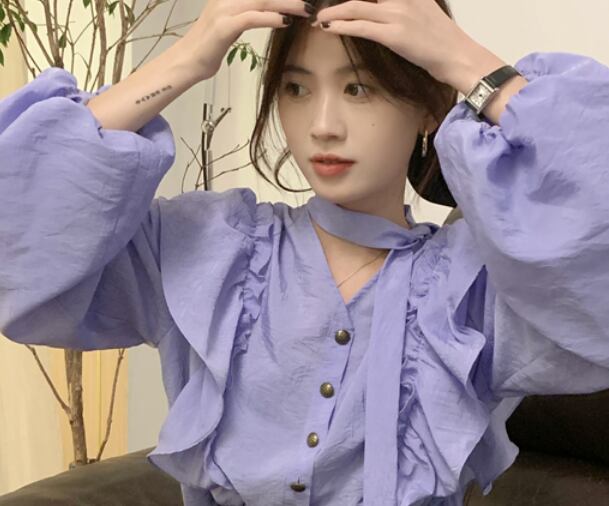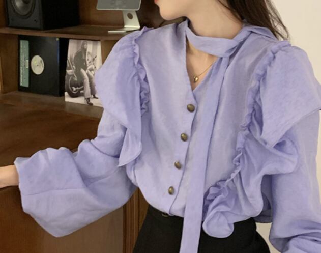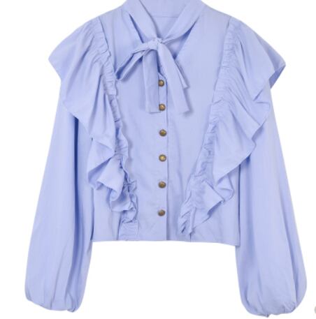リボンネクタイ付きふんわり袖の長袖ブラウスです。