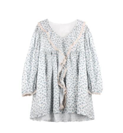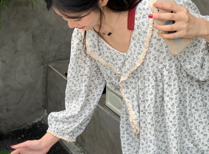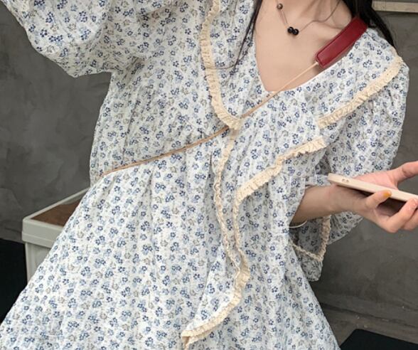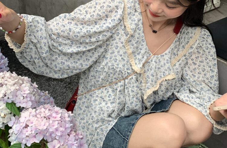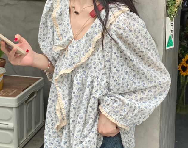 Vネック花柄ブラウス トップス 袖あり 長袖 爽やか 大人スタイル かわいい 大人可愛い きれいめ シンプル 大人 上品 おしゃれ かっこいい 大人可愛い 大人女子 こなれ感 キュート 爽やか ナチュラル 柄 春 秋 ガーリー 10代 20代 30代 40代 50代 60代 レディース ママ 女の子 オフィス ビジネス OL 通勤 学生 通学 デート お出かけ 女子会 リラックス チュニック ブルー ファッション コーデ スタイル デート 花柄 流行 インスタ映え フリーサイズ ゆったり