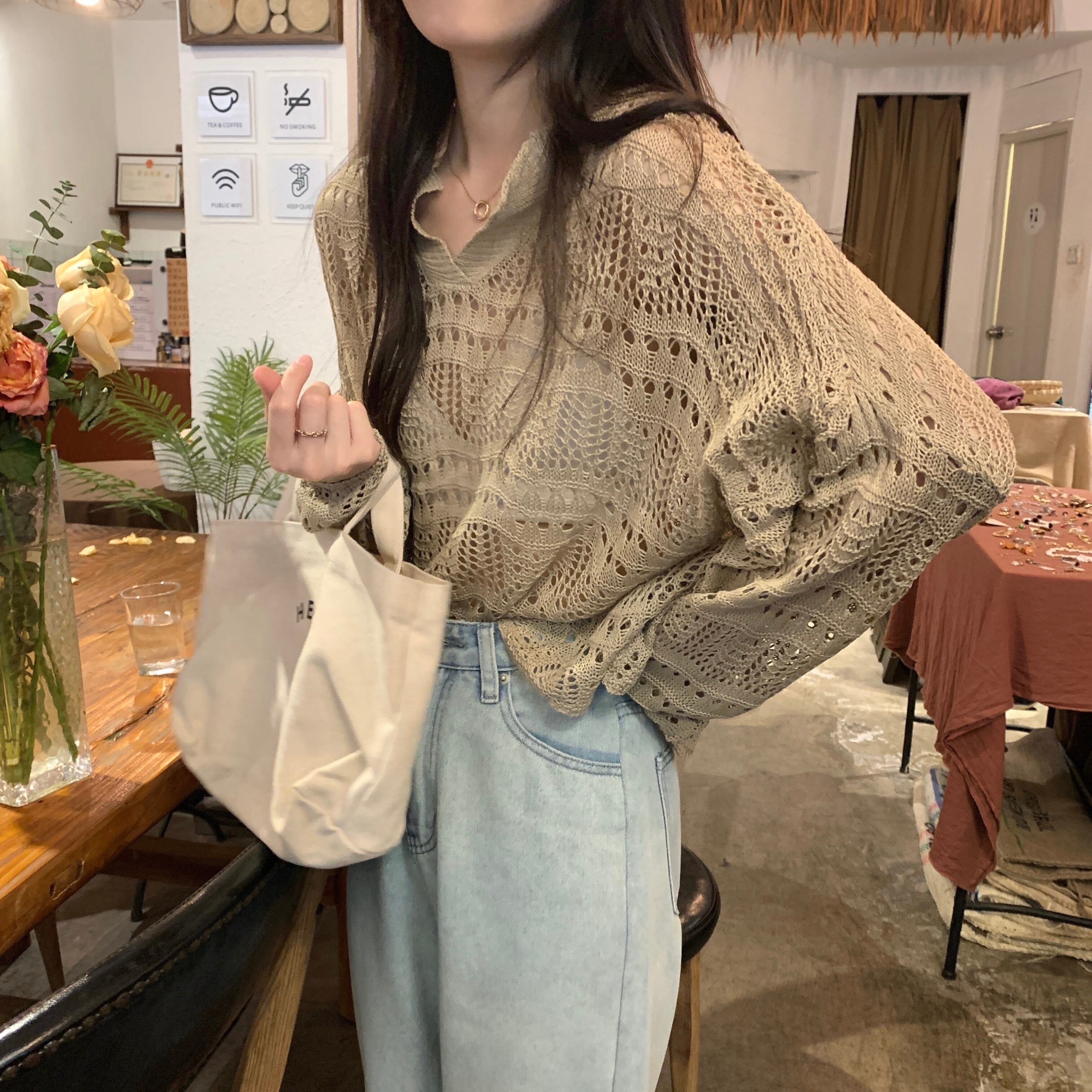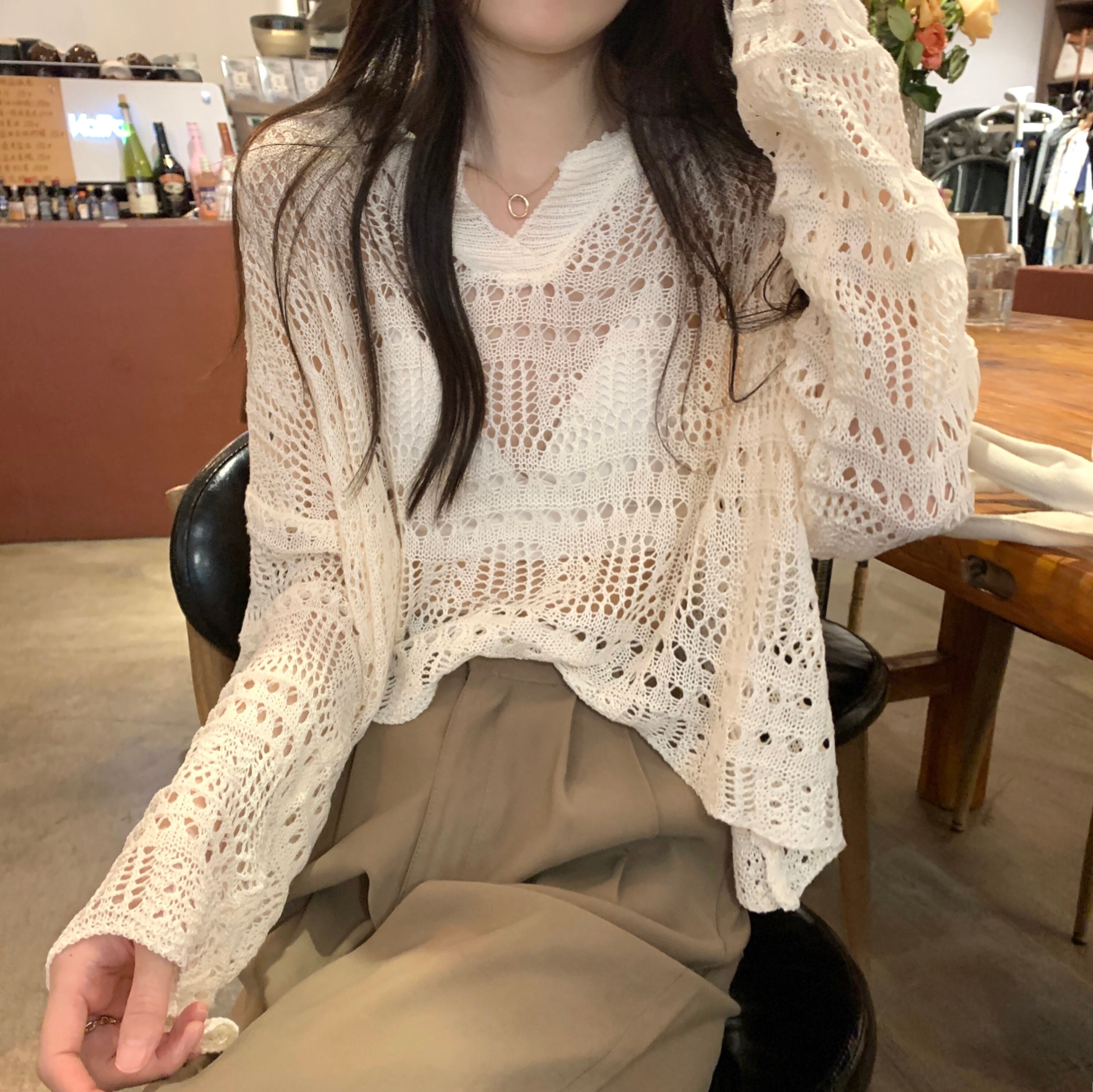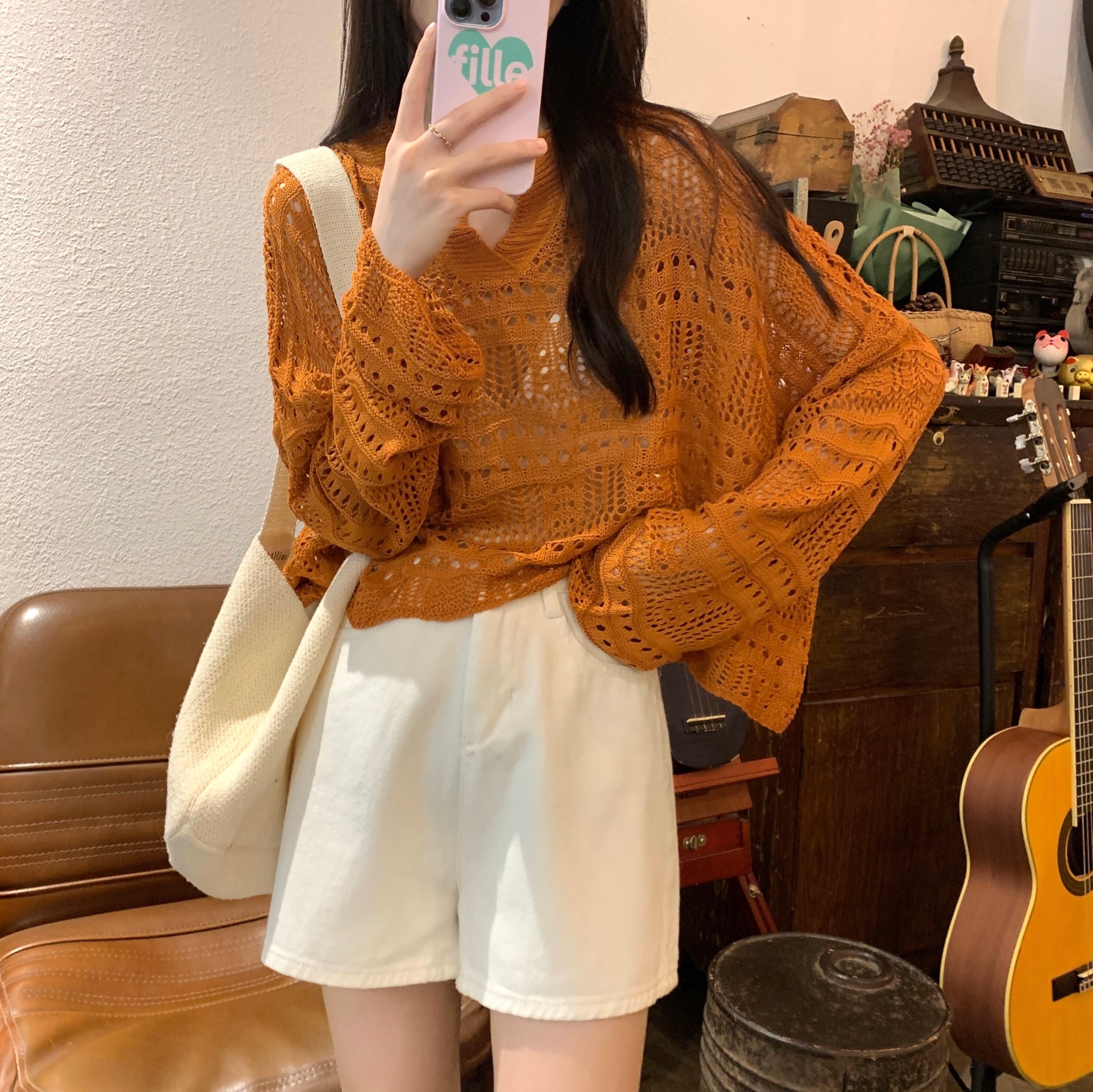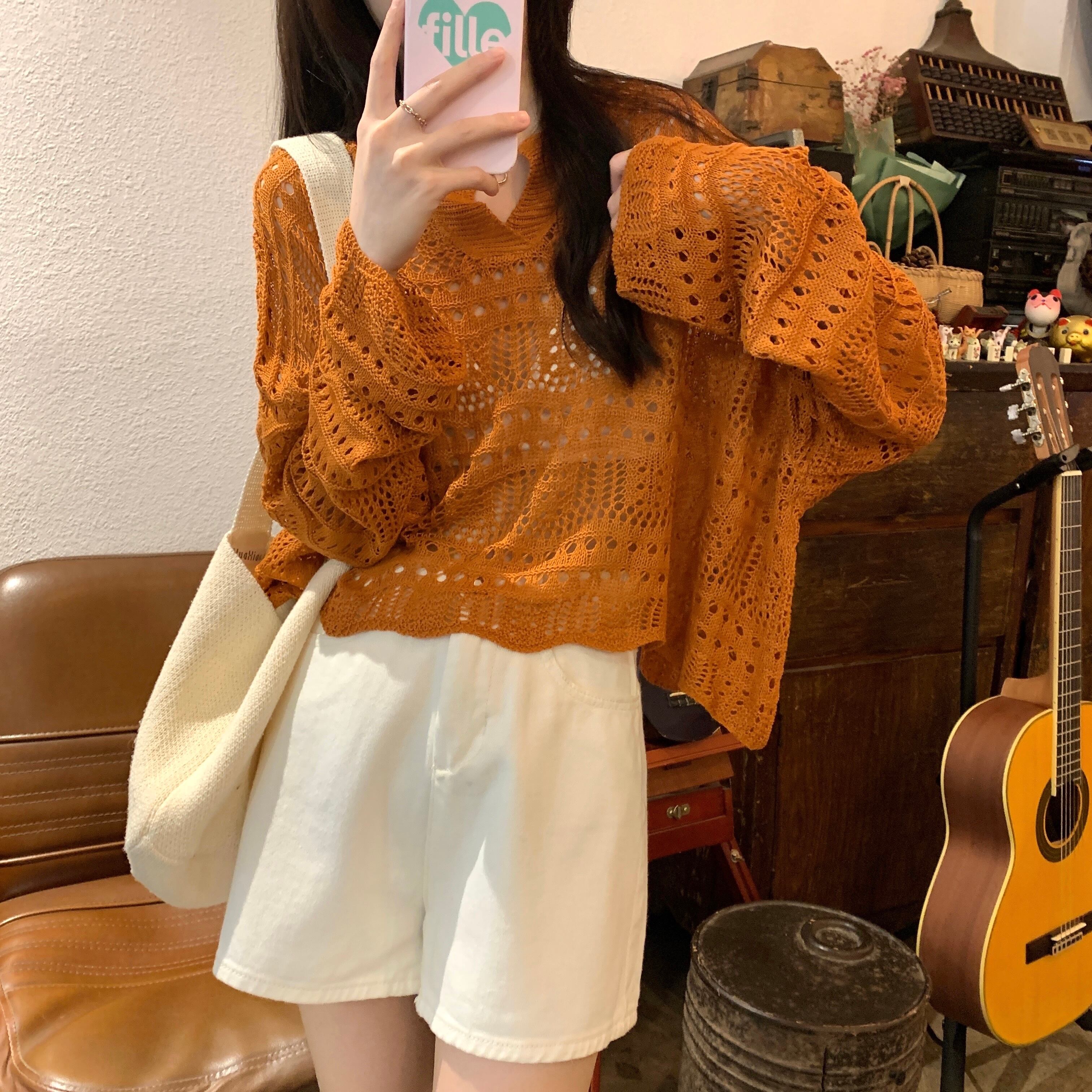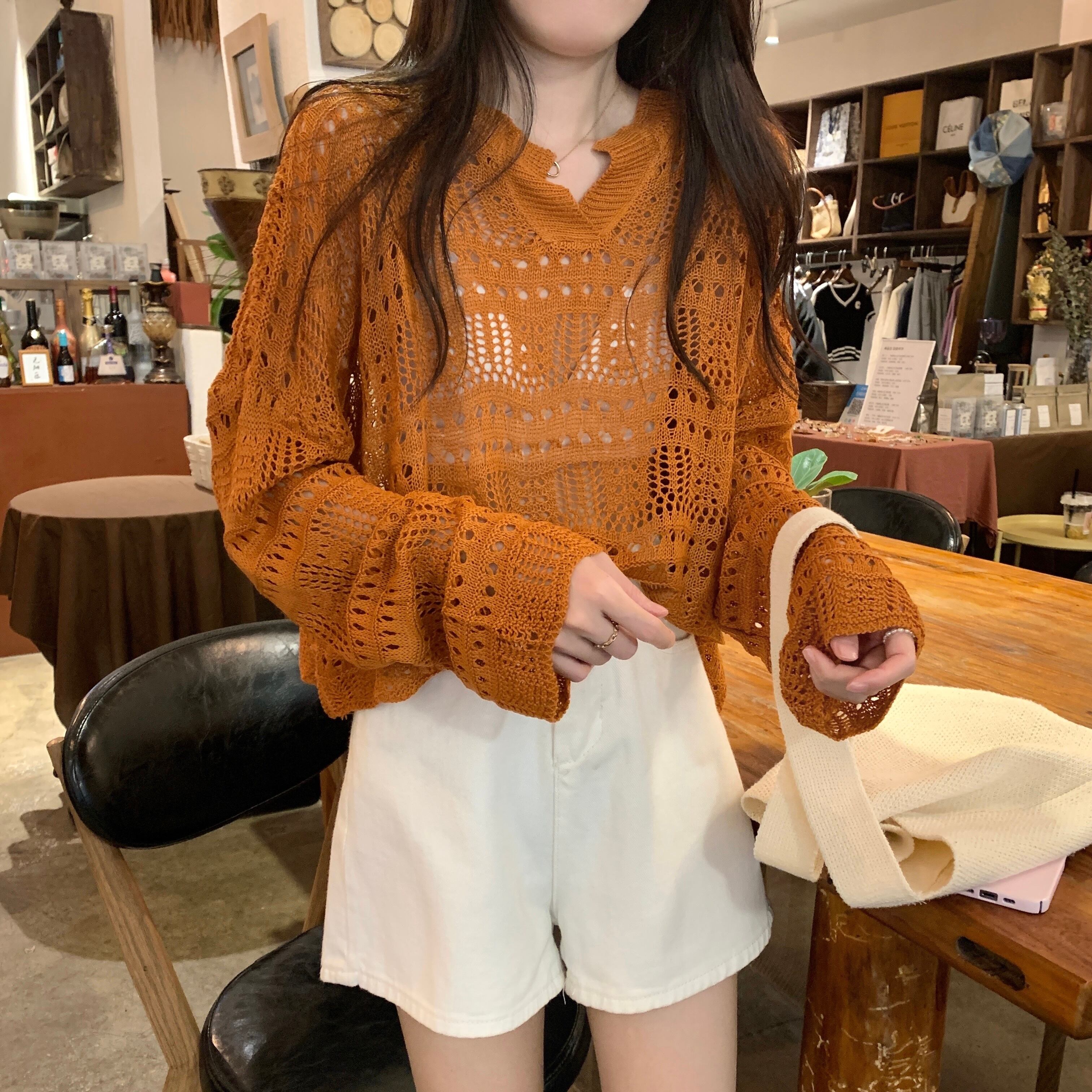 長袖ニット トップス ニットソー セーター 袖あり 長袖 Vネック クロシェ 透け感 かわいい 大人可愛い きれいめ シンプル カジュアル 大人 上品 おしゃれ お洒落 大人可愛い 大人女子 こなれ感 個性的 クール 主役級 存在感 無地 ボーダー 春 秋 10代 20代 30代 レディース 学生 通学 デート お出かけ 公園デビュー 女子会 休日 着回し 普段使い 重ね着 韓国系 オルチャン 色展開 カーキ オレンジ アプリコット
