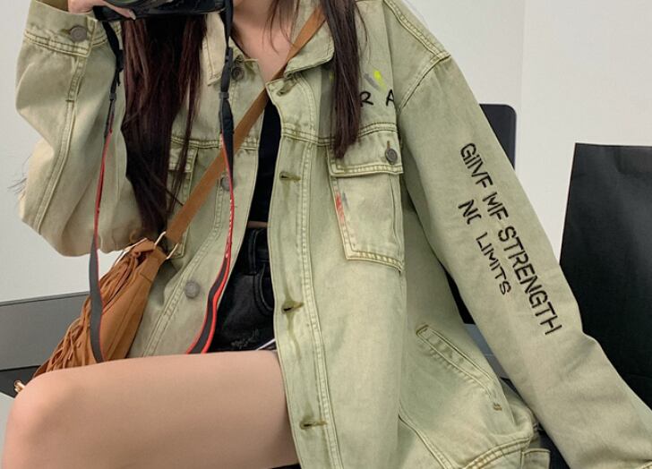 カラーデニムジャケット 袖あり 長袖 アウター ロゴ ジャケット 大きめ ゆったり ラフおしゃれ かっこいい 大人可愛い 大人女子 こなれ感 キュート 爽やか ナチュラル 柄 春 秋 お揃い ペア 10代 20代 30代 40代 レディース ママ 女の子 兼用 目立つ 個性的 学生 通学 デート お出かけ 女子会 着回し ファッション コーデ スタイル デート モテ プレゼント 流行 インスタ映え ゆったり