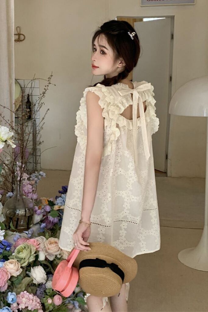 背中のリボンが女らしさをアップ。