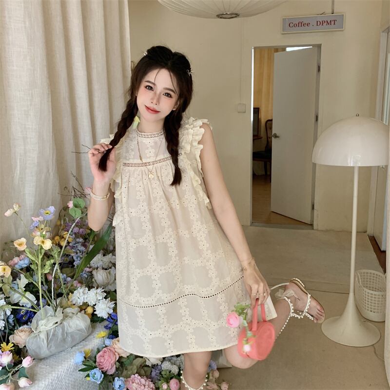 ボリューム感たっぷりのフリルが可愛いノースリーブワンピース。