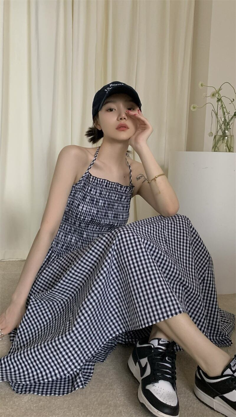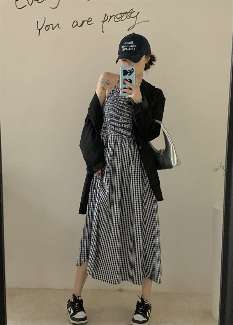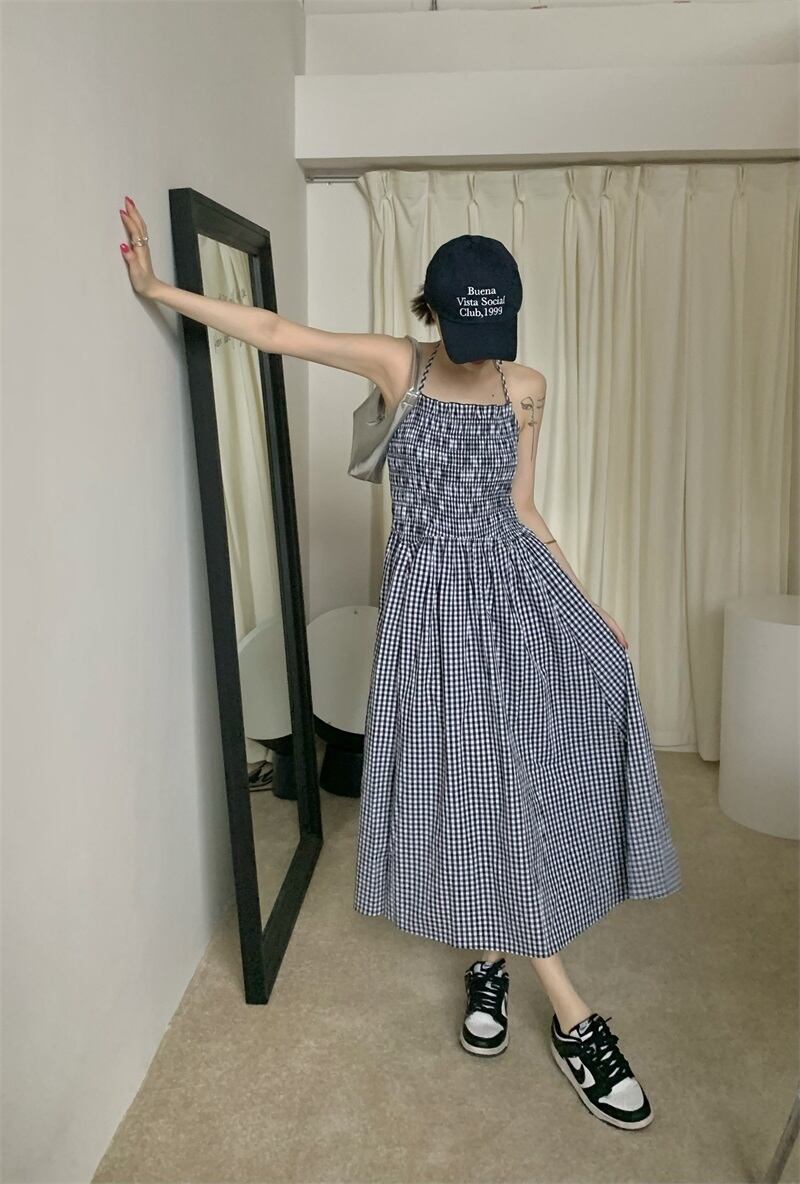 格子 掛け首ストラップドレス レディース 夏 ウエストデザイン スカート ワンピース フレアワンピース ミモレ丈 ロング 袖なし ストレート ウエストマーク ハイウエスト 大人可愛い シンプル カジュアル 大人 おしゃれ レトロ 大人女子 ラフ キュート ガーリー 格子柄 春 夏 秋 10代 20代 30代 40代 レディース 女性用 OL 通勤 学生 通学 デート お出かけ 女子会 お泊まり 休日 リゾート 旅行 着回し 普段使い 重ね着 ブラック