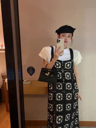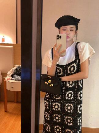 ざっくりとしたかぎ針編みが魅力的なキャミワンピース。