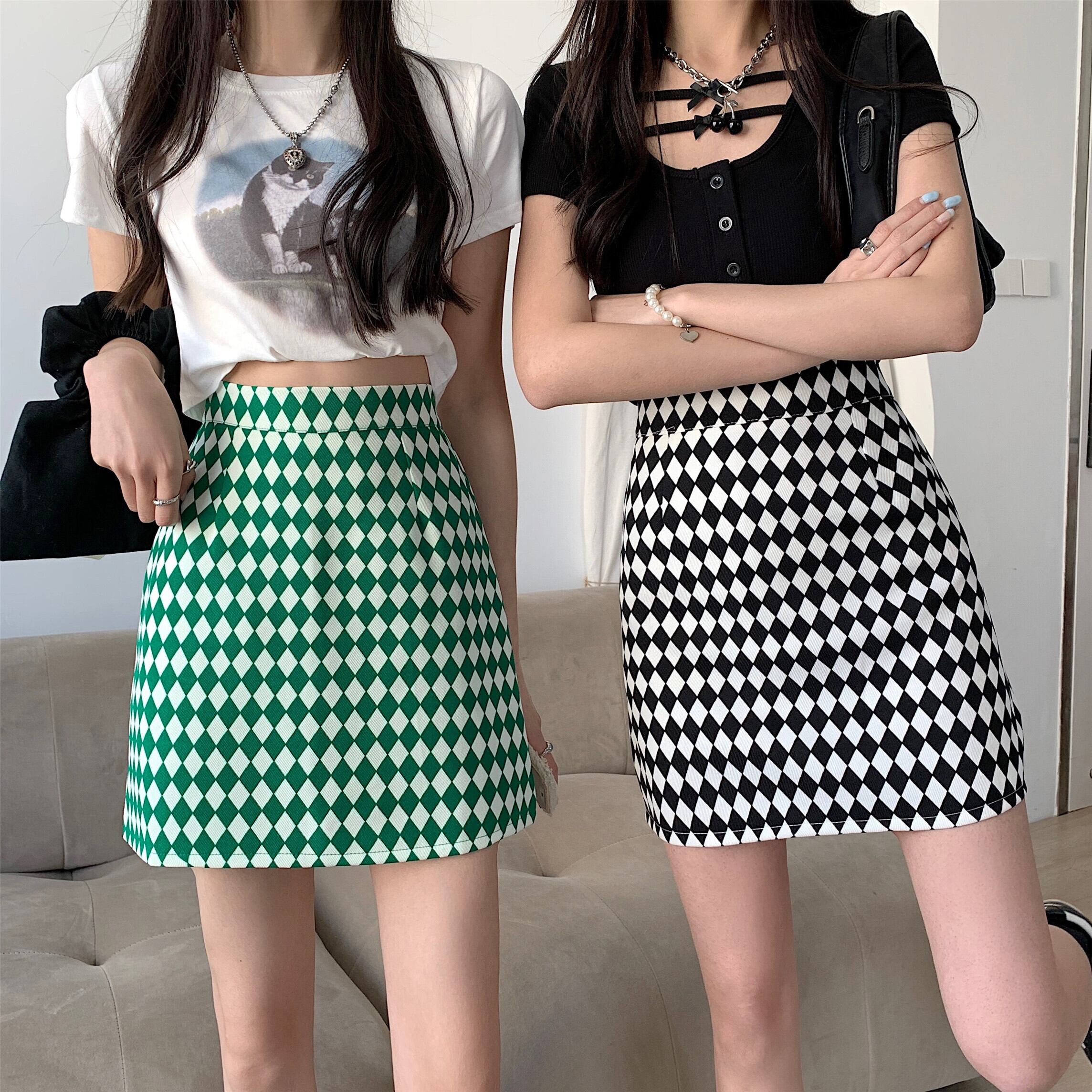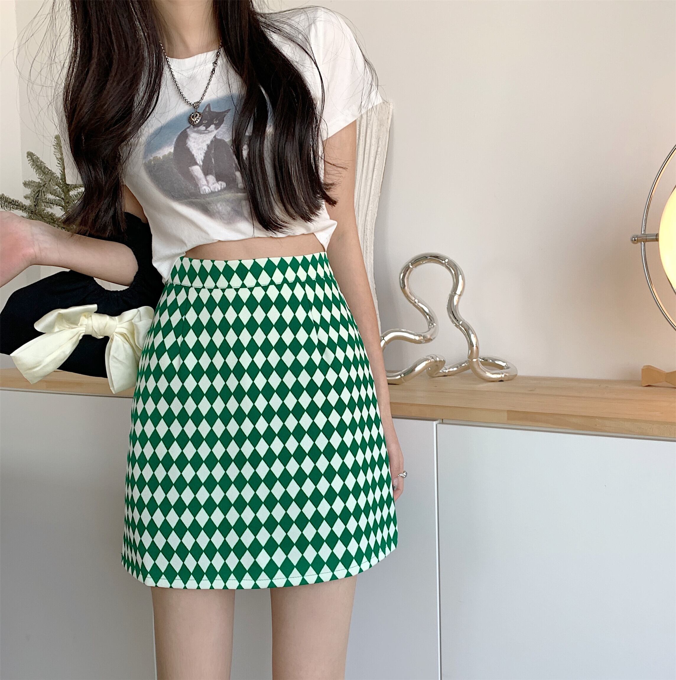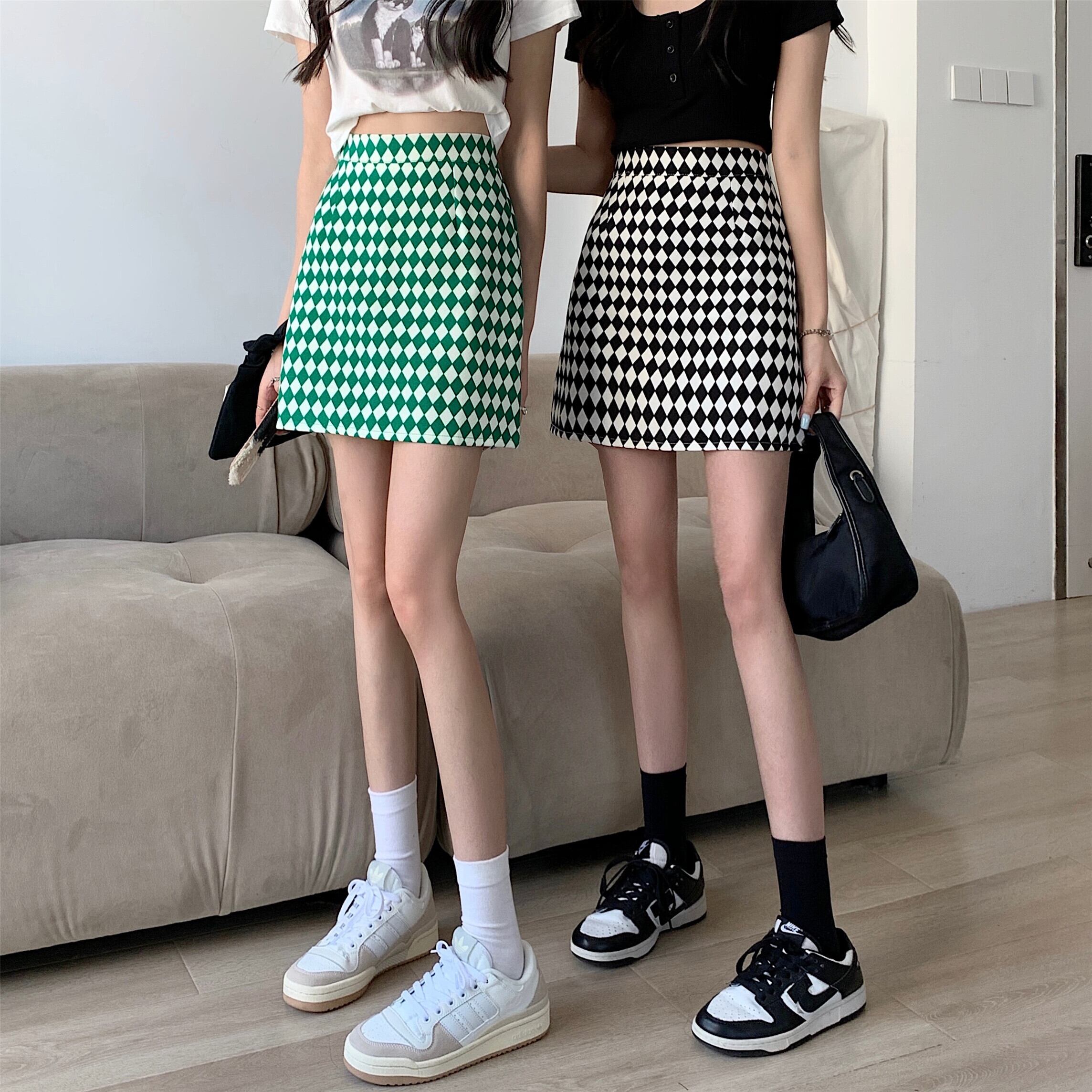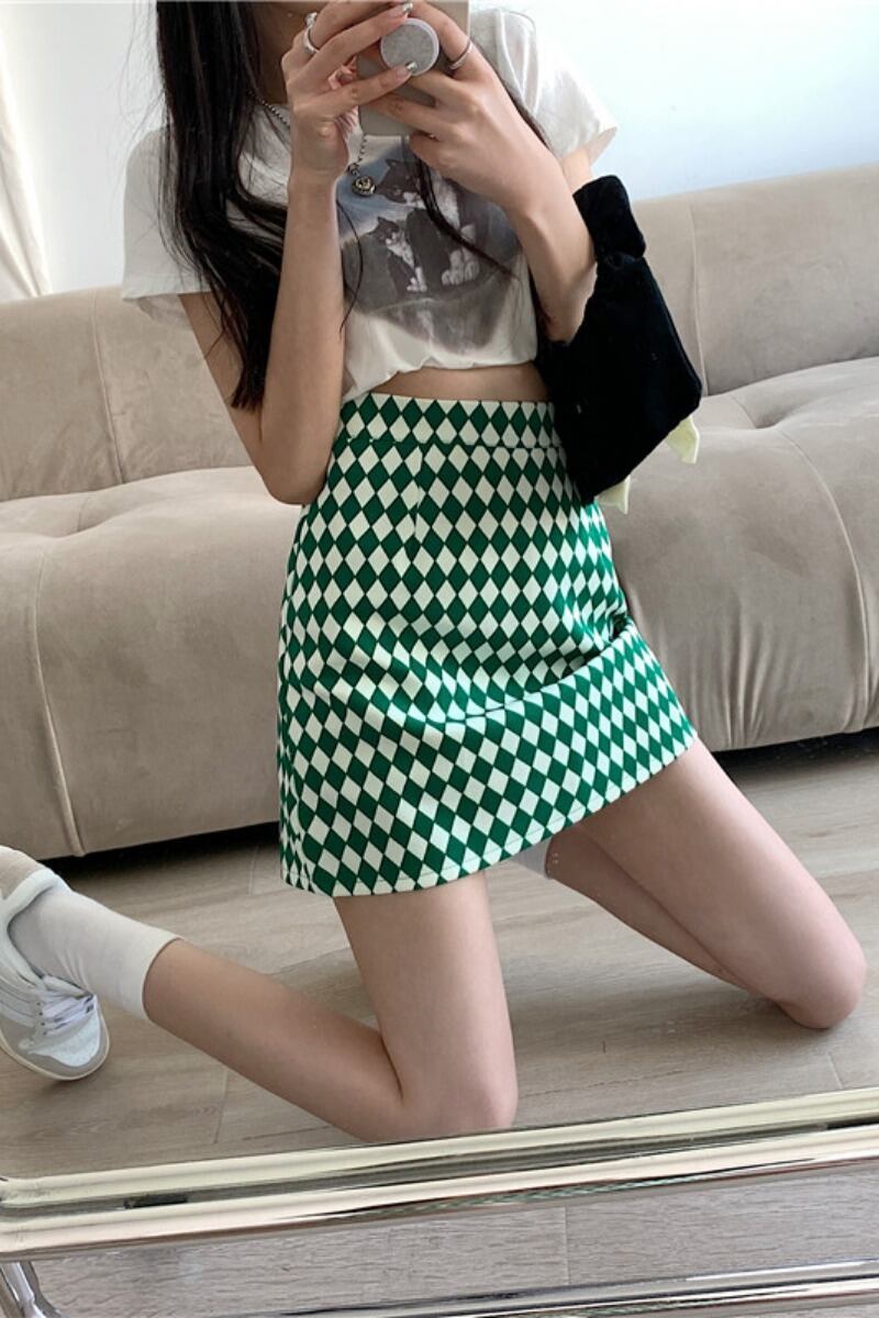 チェッカー柄がおしゃれなミニスカート。