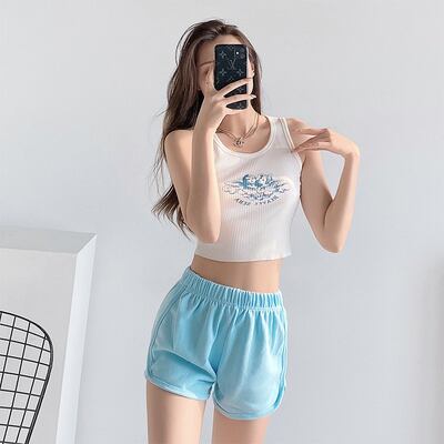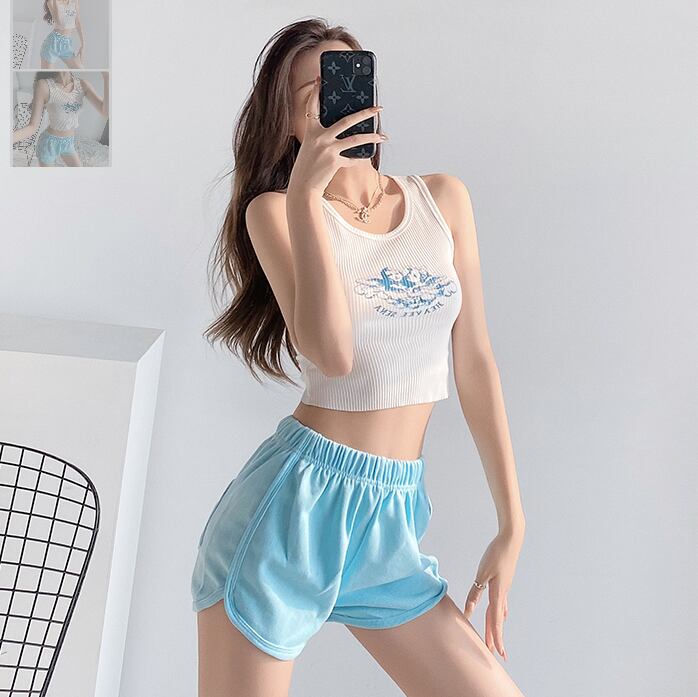 天使のプリントがかわいいタイトノースリーブトップス。