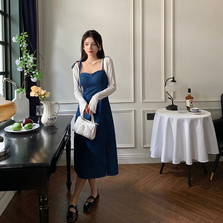 すっきりとしたシルエットがおしゃれなデニムワンピース◎