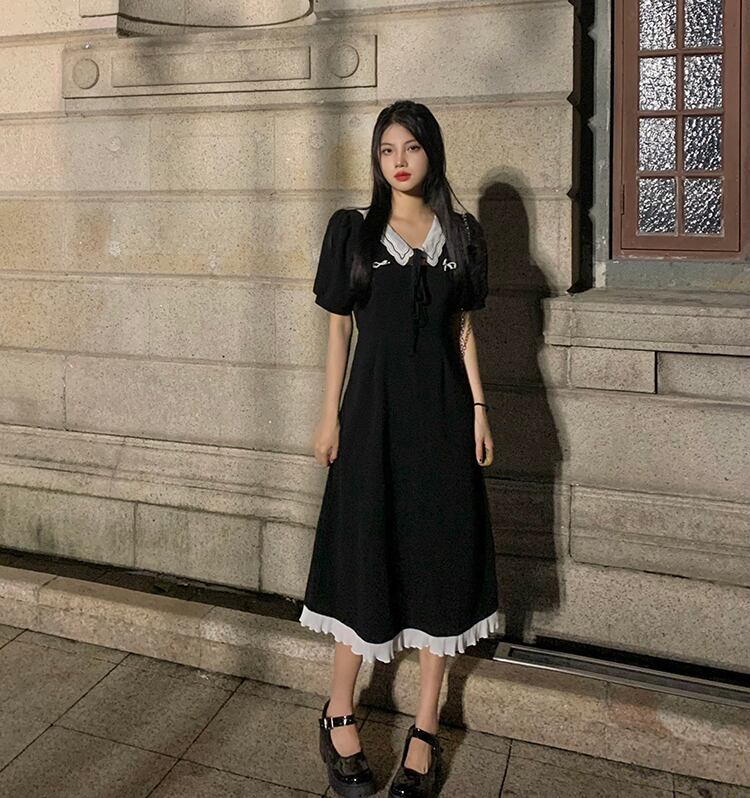 フレアワンピース ワンピース フレアワンピース ミモレ ミモレ丈 ロング ロング丈 袖あり 半袖 パフスリーブ Vネック 襟付き フレア Aライン レース リボン ハイウエスト かわいい 大人可愛い きれいめ シンプル カジュアル 大人 上品 おしゃれ お洒落 大人可愛い 大人女子 こなれ感 キュート ガーリー エレガント 主役級 存在感 無地 春 夏 秋 10代 20代 30代 レディース 学生 通学 デート お出かけ 公園デビュー 女子会 休日 パーティー イベント 着回し 普段使い 重ね着 韓国系