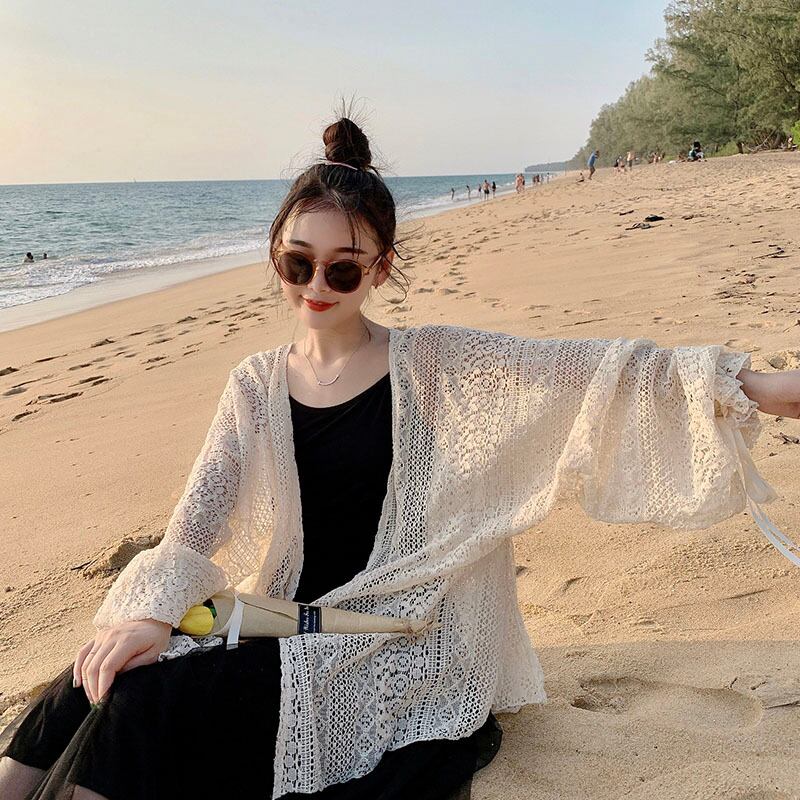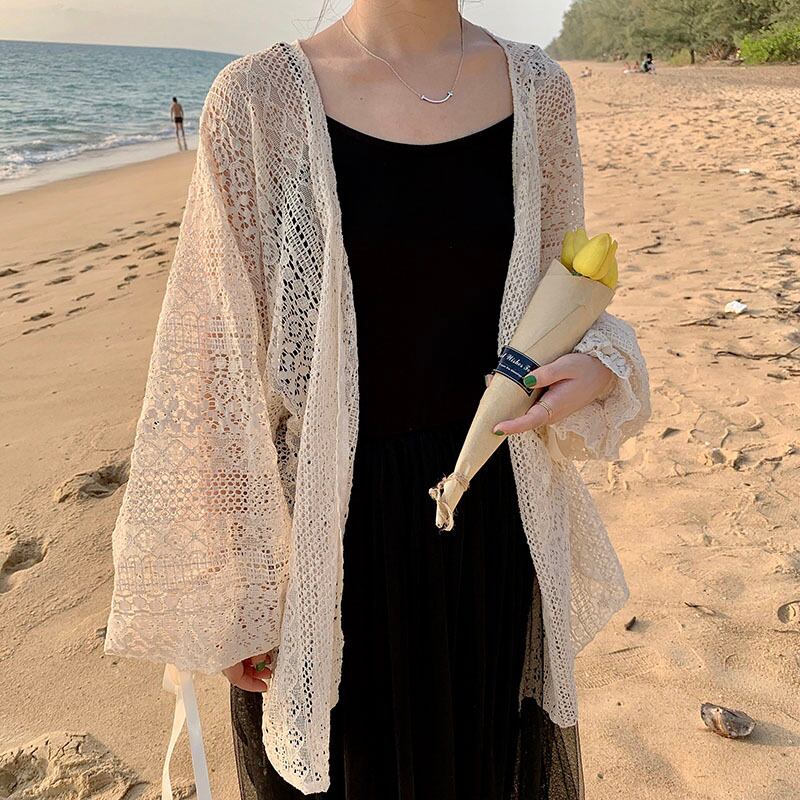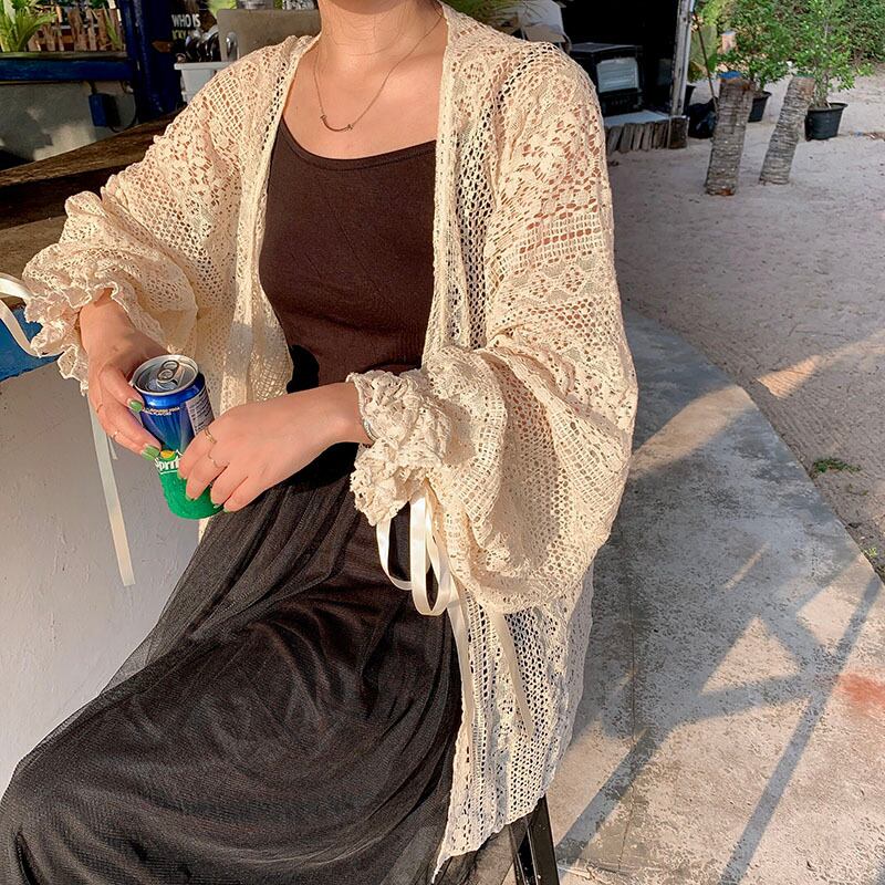 シンプルでどんなコーデにも合わせやすいレースのカーディガン。