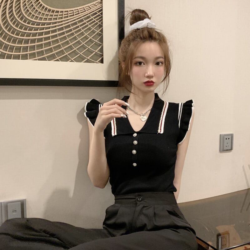 フリルスリーブニット トップス ニットソー セーター 袖なし ノースリーブ Vネック 襟付き フリル リブニット かわいい 大人可愛い きれいめ シンプル カジュアル 大人 上品 おしゃれ お洒落 大人可愛い 大人女子 こなれ感 キュート ガーリー 個性的 クール 主役級 存在感 無地 春 夏 秋 10代 20代 30代 レディース OL 通勤 学生 通学 デート お出かけ 公園デビュー 女子会 休日 着回し 普段使い 重ね着 韓国系 オルチャン 色展開 白 ホワイト 黒 ブラック