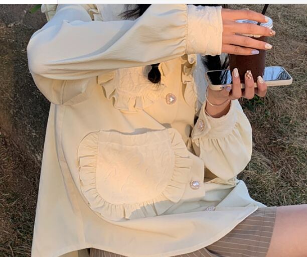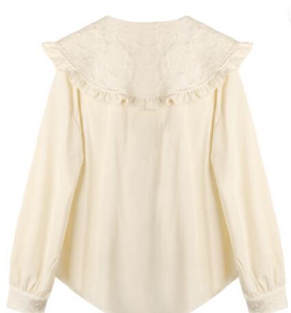 大きな襟とフリルがキュートな長袖ブラウスです。