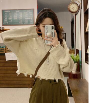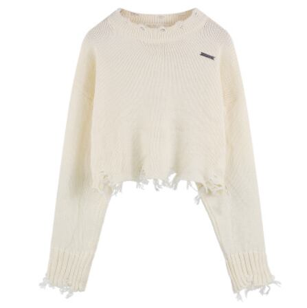 ダメージ加工のショート丈ニットです。