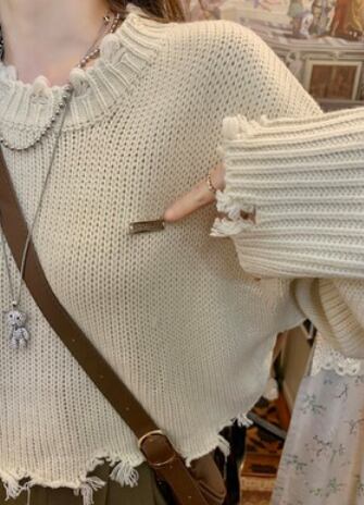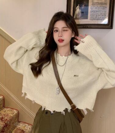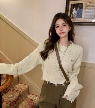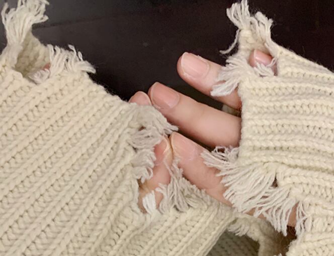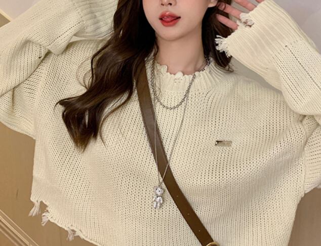 ショート丈長袖ニット 袖あり 長袖 トップス ニット ダメージ加工 可愛い きれい キュート ラフ カジュアル おしゃれ かっこいい 大人可愛い 大人女子 こなれ感 キュート 爽やか ナチュラル 柄 春 秋 10代 20代 30代 40代 レディース ママ 女の子 公園 ビジネス OL 通勤 学生 通学 デート お出かけ 女子会 イベント リラックス 着回し 普段使い ファッション コーデ スタイル デート モテ プレゼント 流行 インスタ映え フリーサイズ ゆったり