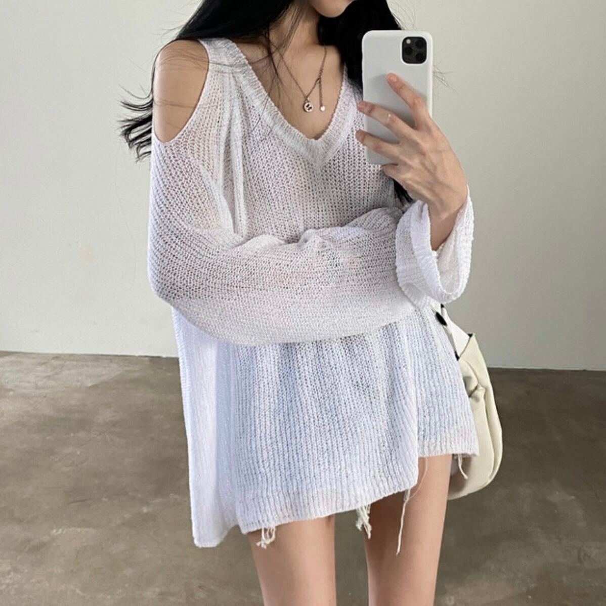 大きな韓国 シック Vネック ニットブラウス スキニー カジュアル 日焼け止め トップス 女性 トップス ニットソー ロング 長袖 ドロップショルダー 萌袖 Vネック ストレート 大人可愛い シンプル カジュアル おしゃれ かっこいい アジアン 大人女子 こなれ感 ラフ ルーズ 無地 秋 10代 20代 30代 レディース OL 学生 通学 デート お出かけ 女子会 お泊まり 休日 イベント 旅行 普段使い 楽ちん M L XL 2XL 3XL 4XL ゆったり ホワイト ブラック アプリコット