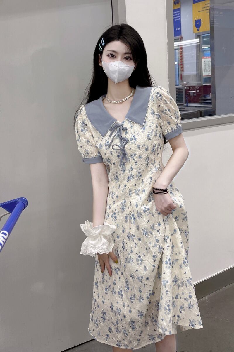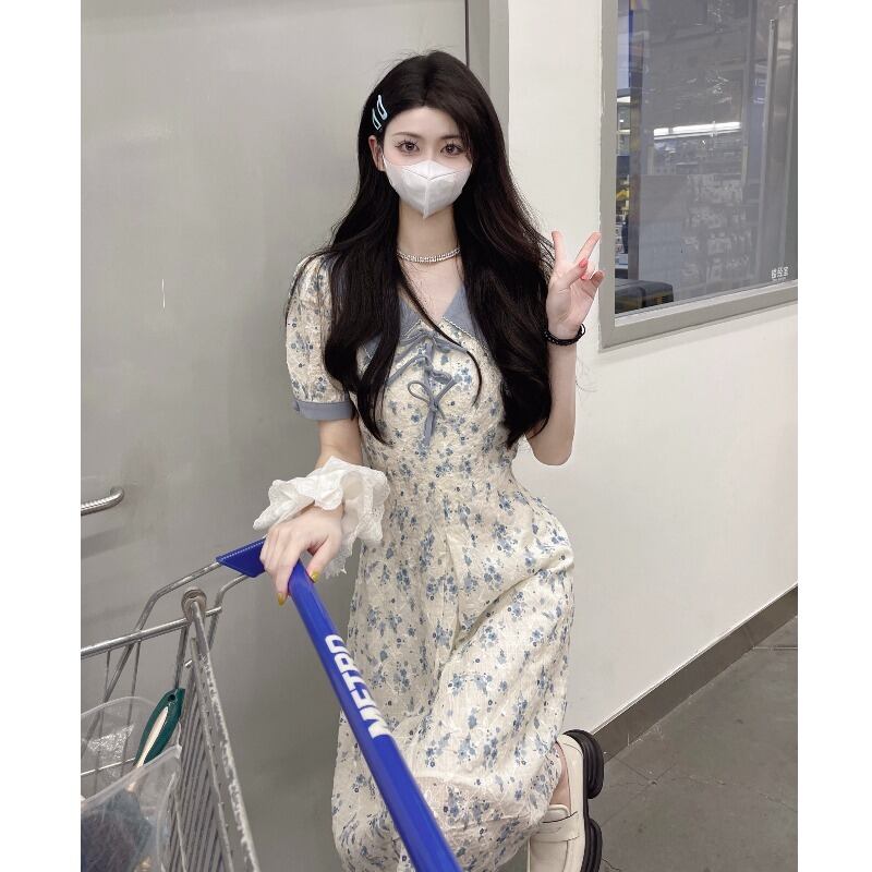 クラッシュカラーラペルストラップ 花 ドレス 女性夏 スキニーデザイン フランス 半袖 a字スカート ワンピース フレアスカート ひざ丈 膝下 半袖 Vネック Aライン ハイウエスト 大人可愛い きれいめ シンプル カジュアル 大人 上品 おしゃれ 大人女子 キュート ガーリー 小花柄 夏 10代 20代 30代 レディース OL 通勤 学生 通学 デート お出かけ 女子会 お泊まり 休日 旅行 高原 ガーデン 着回し 普段使い S M L ホワイト