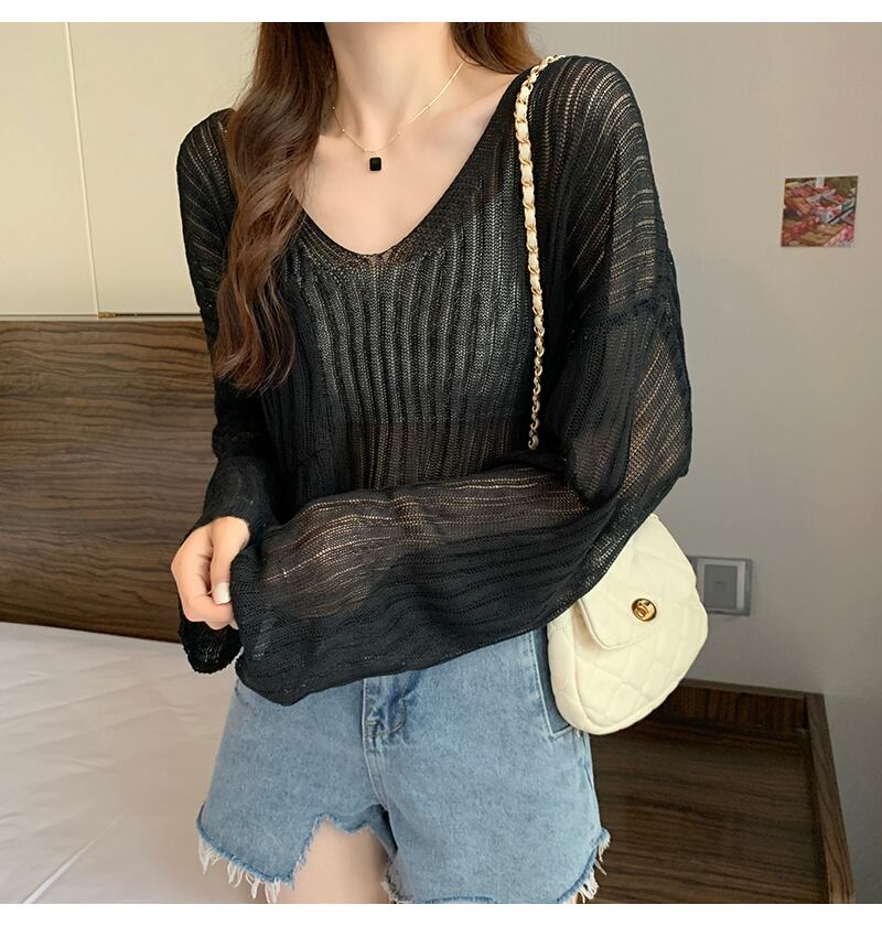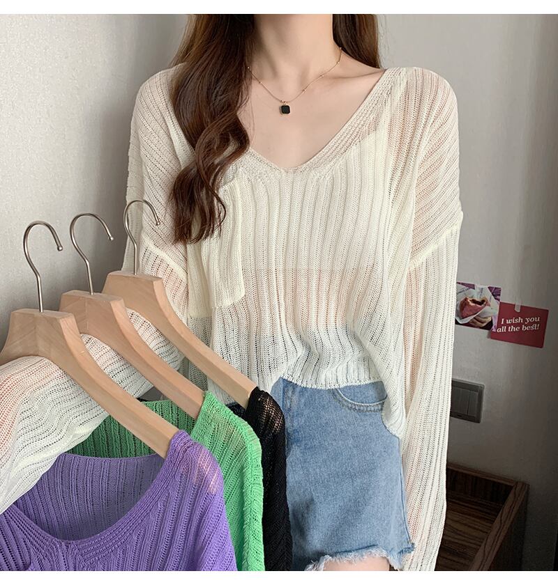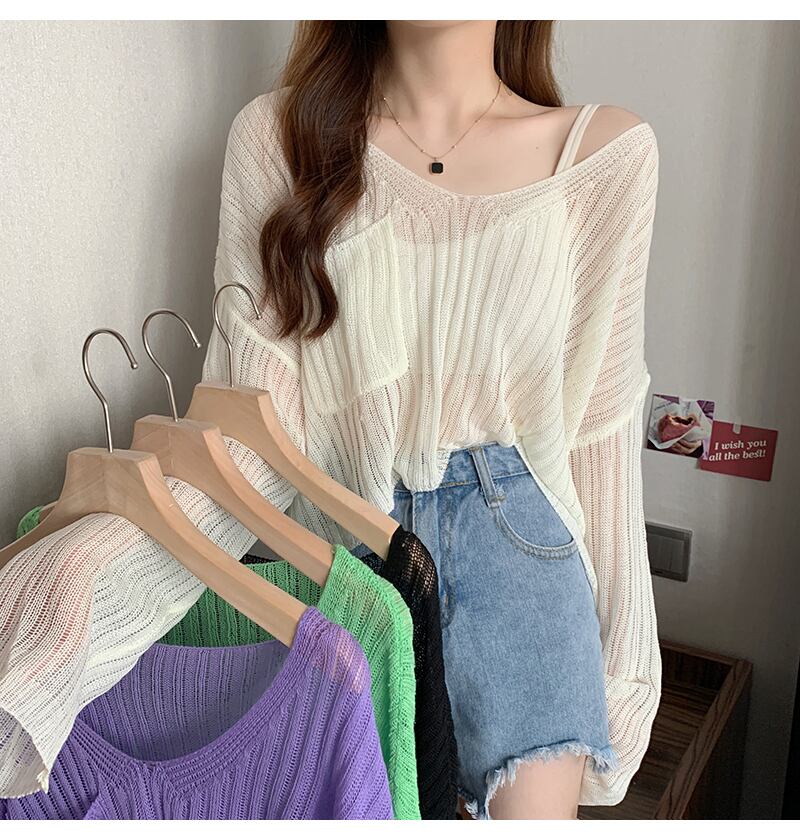 アイスワイヤーニット サンディスペンス レディース 春 夏 外スリング付き ブラウス Vネック エアコンシャツ薄い ブラウス トップス Tシャツ ブラウス ミディアム丈 長袖 ボリューム袖 萌袖 Vネック ストレート 透け感 大人可愛い きれいめ シンプル カジュアル おしゃれ 大人女子 こなれ感 ラフ 無地 春 夏 秋 10代 20代 30代 40代 50代 レディース OL 通勤 学生 通学 デート お出かけ 女子会 お泊まり 休日 普段使い ゆったり ホワイト ブラック グリーン パープル